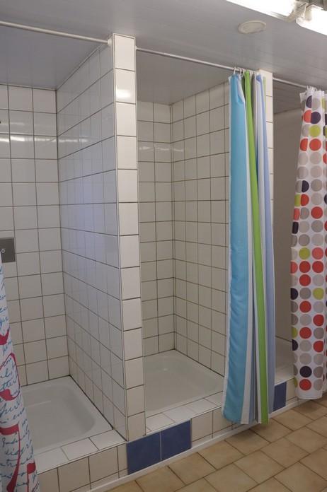 Les sanitaires sont constitués d'une part d'un local comportant 3 WC, deux urinoirs et un lavabo, et d'autre part d'un local équipé de trois douches et de trois lavabos.