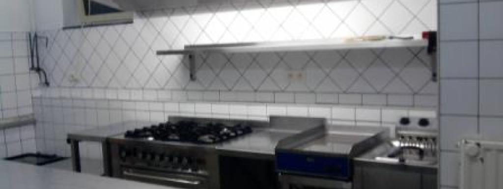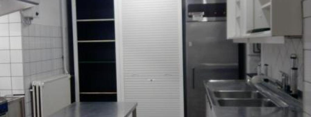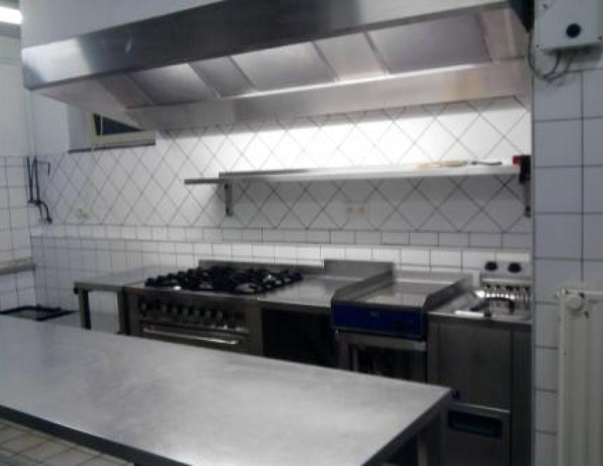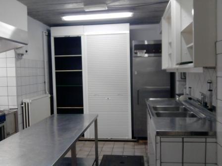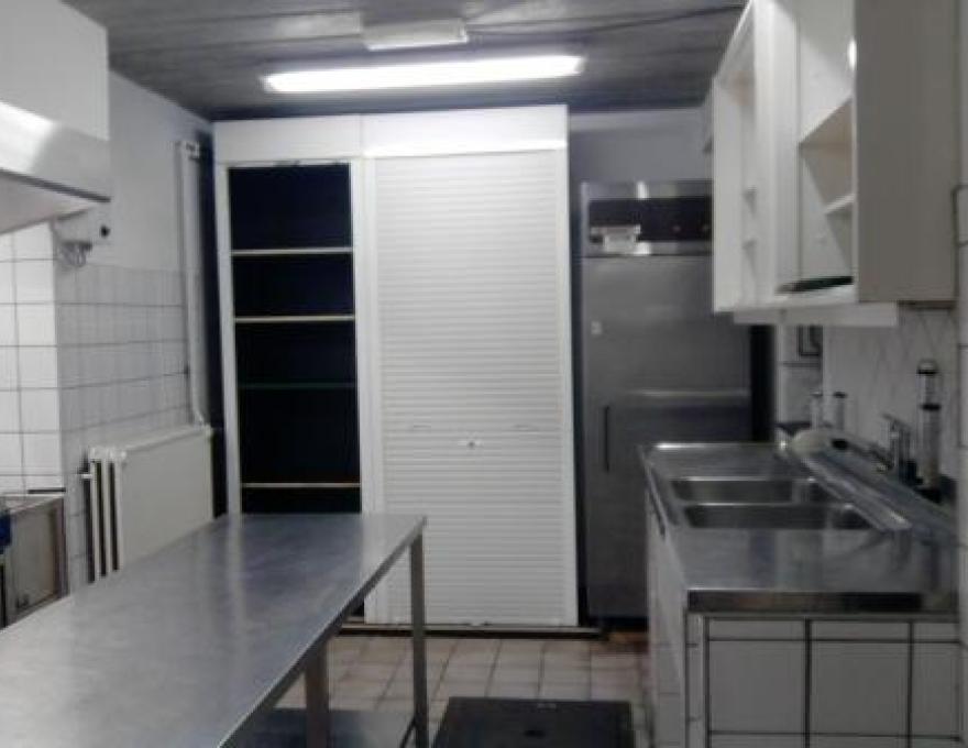 Partie inférieure gauche : 1 bar, 1 cuisine, 2 WC, 1 salle capacité 50 personnes