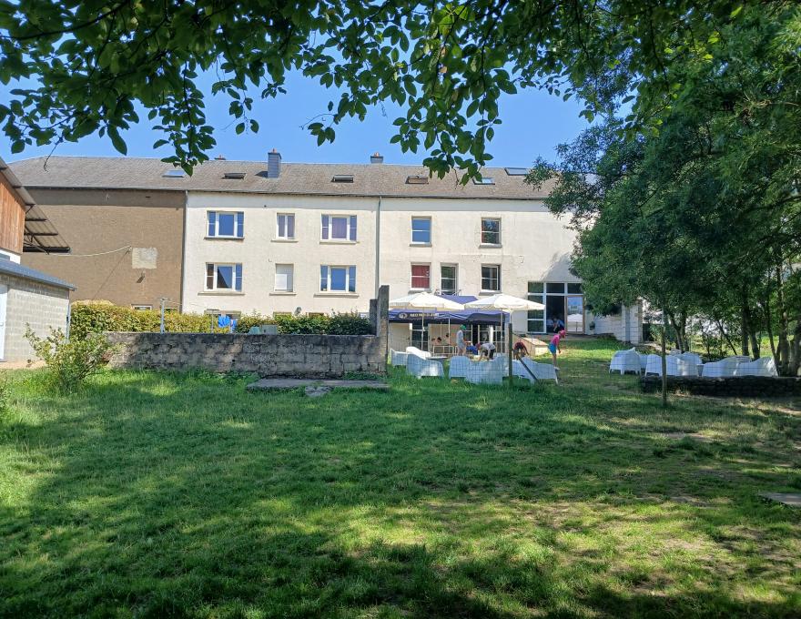 En extérieur, le gîte dispose d'une terrasse et jardin avec mobilier, un grand préau ouvert avec des sanitaires extérieurs, une scène de spectacle, une prairie de 2ha avec accès à la berge et à la rivière. Découvrez également les animaux de notre mini-ferme : lapins, poules, chèvres et poneys.