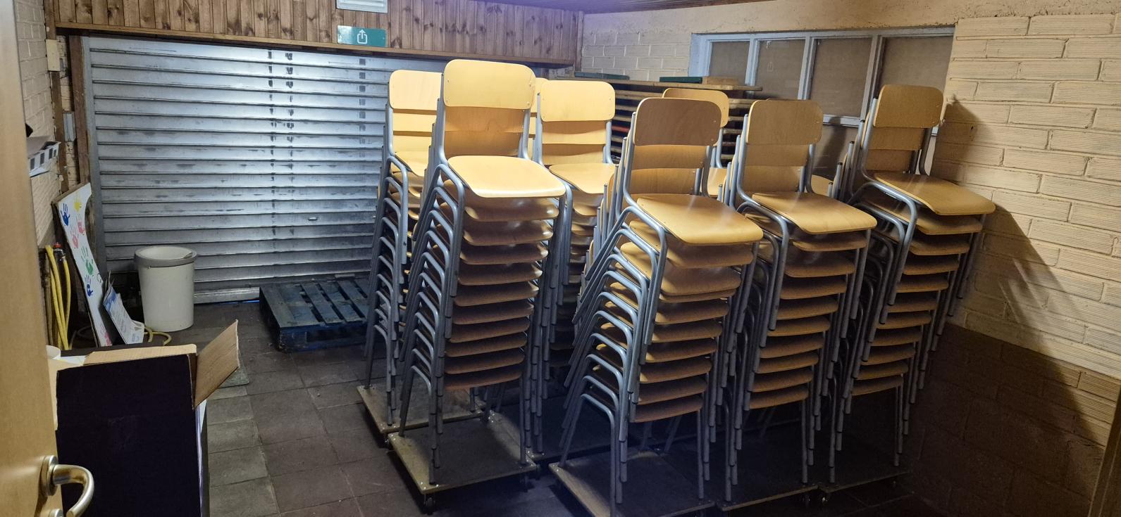 100 chaises, 12 bancs et 14 tables(8p) à disposition