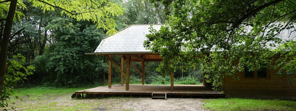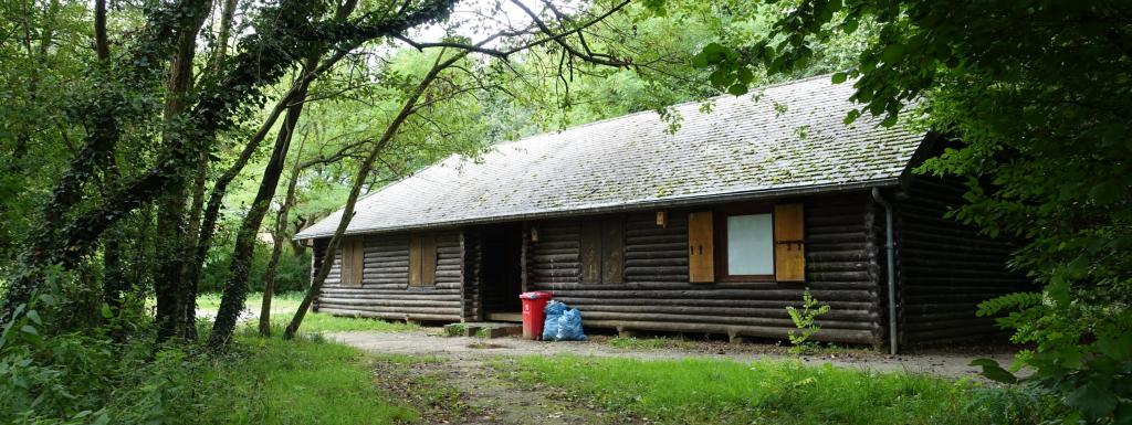 4 chalets de notre Unité sur un terrain d'aventures de 3ha réservé exclusivement à des mouvements de jeunesse : scouts , guides , patros .