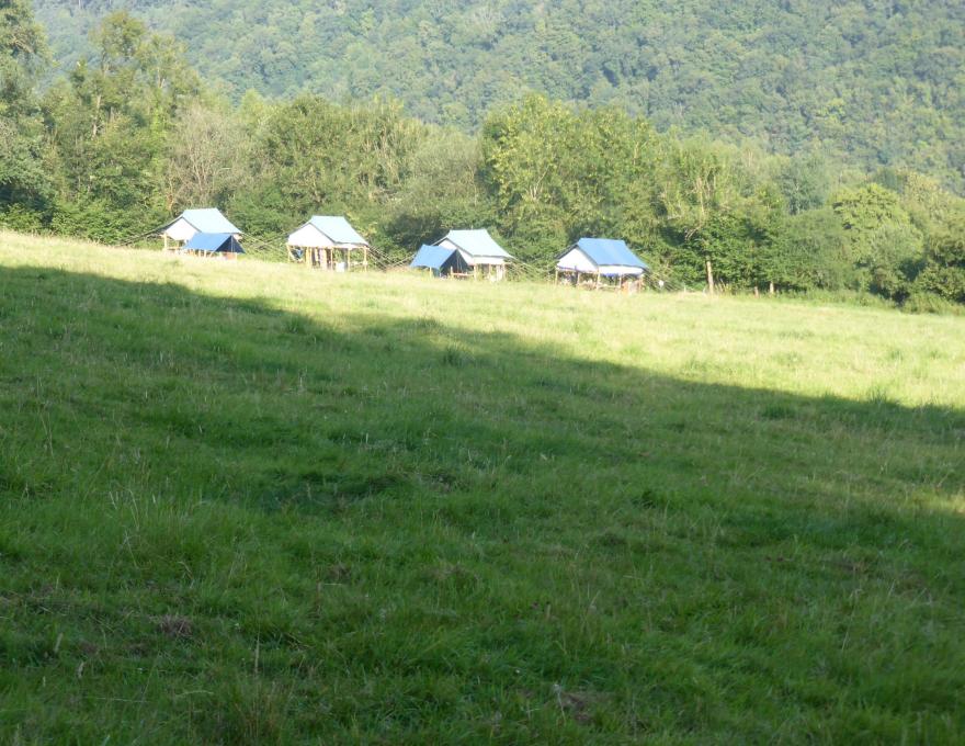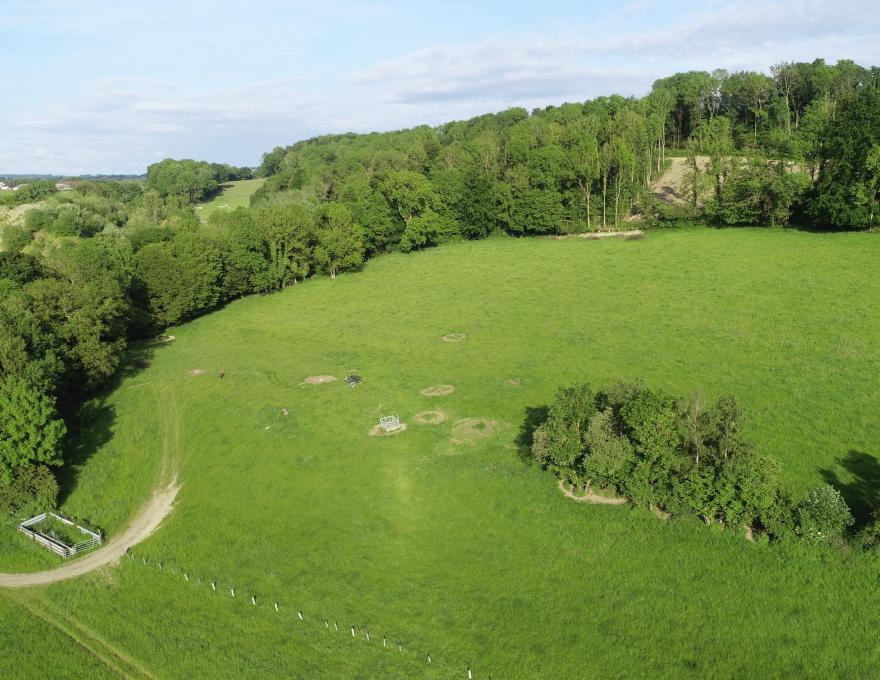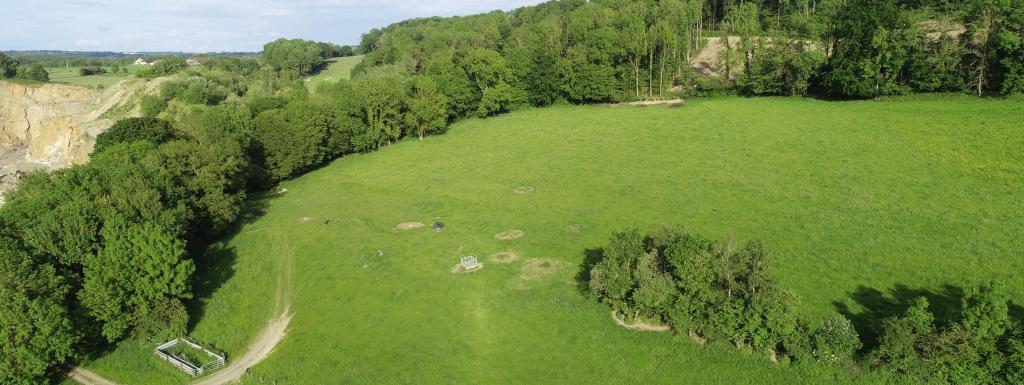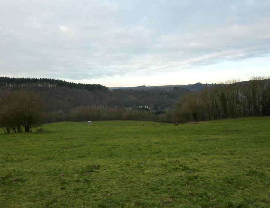 Prairie située dans une clairière, à la l'orée du bois de Fraiture, accessible par un chemin de campagne empierré, endroit calme et isolé en pleine nature , à 400m de l'Ourthe