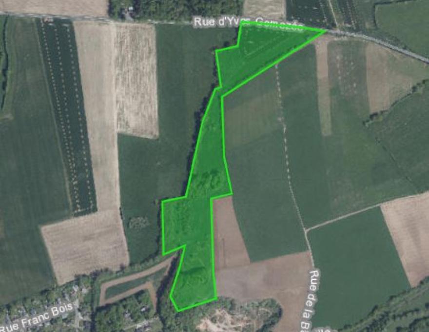 Très grande prairie presque entièrement plate, bordée d'arbres et de haies. Située en pleine campagne, à proximité du village de Saint-Aubin et de la ville de Florennes. Un grand bois domanial se trouve à côté. Toilettes sèches sur la prairie. À proximité des Lacs de l'Eau d'Heure et de nombreux commerces, piscine,...