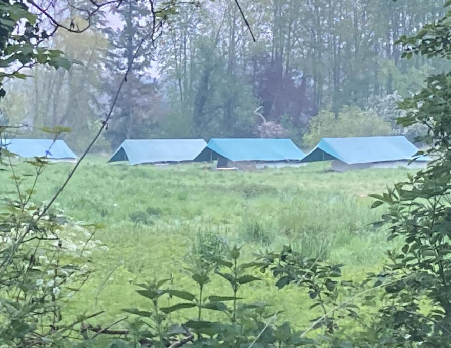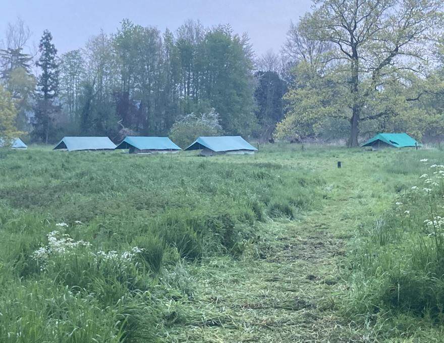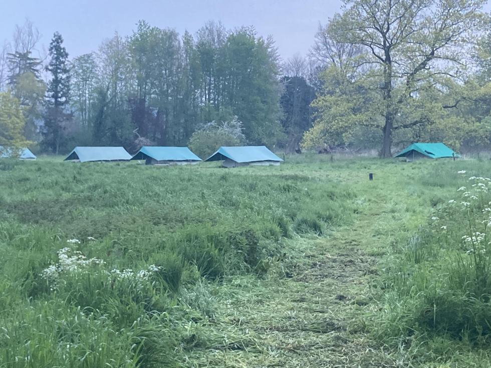 L'électricité est disponible sur la prairie et possibilité d'aller chercher de l'eau potable de l'autre côté du parc (s'arranger avec la gestionnaire).