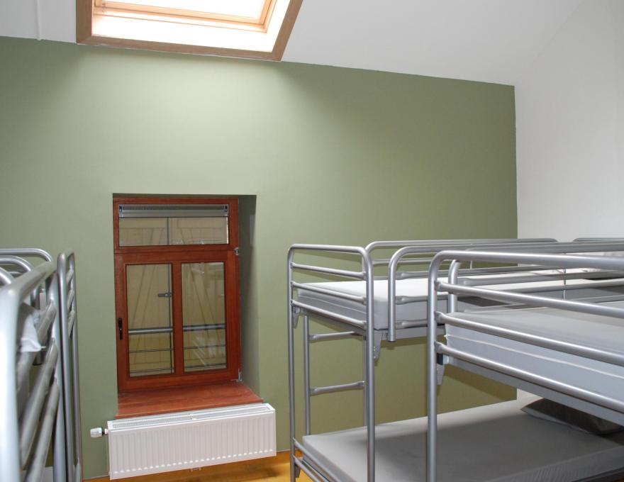 Cette maison peut accueillir une quarantaine de personnes. Vous y trouverez une cuisine équipée ainsi que de la vaisselle, trois dortoirs contenant des lits superposés, une grande salle équipée de tables et de bancs, une salle de douche et trois WC. Un grand jardin et une plaine sont à votre disposition.