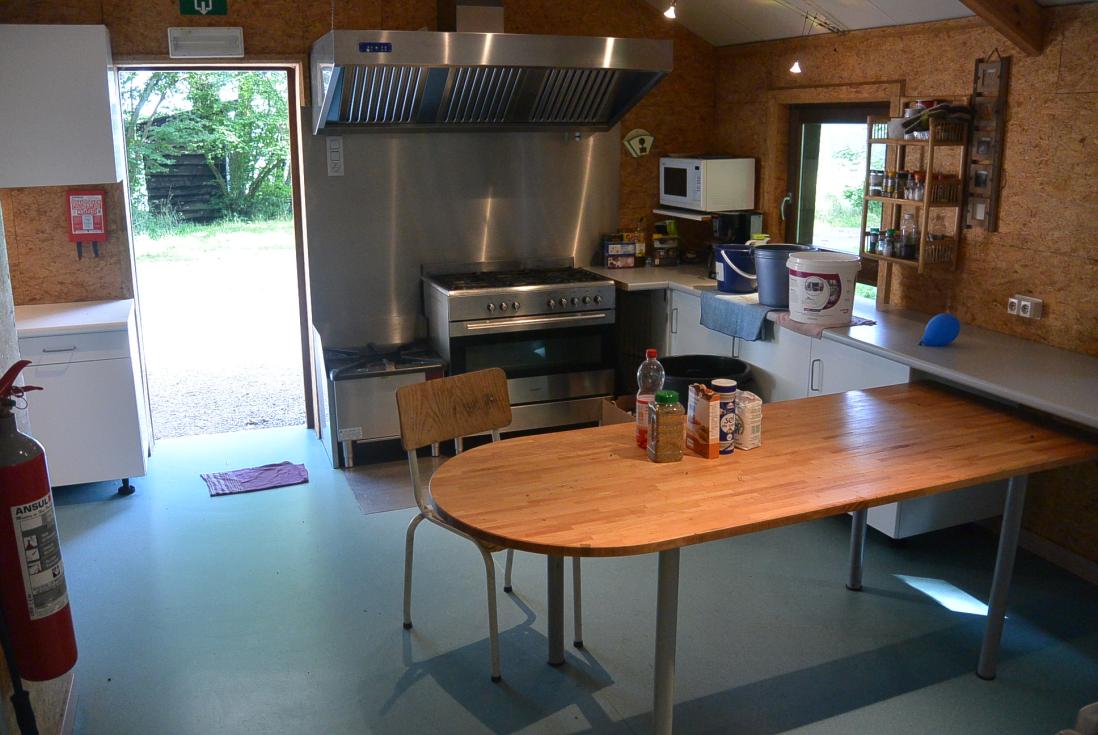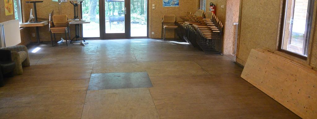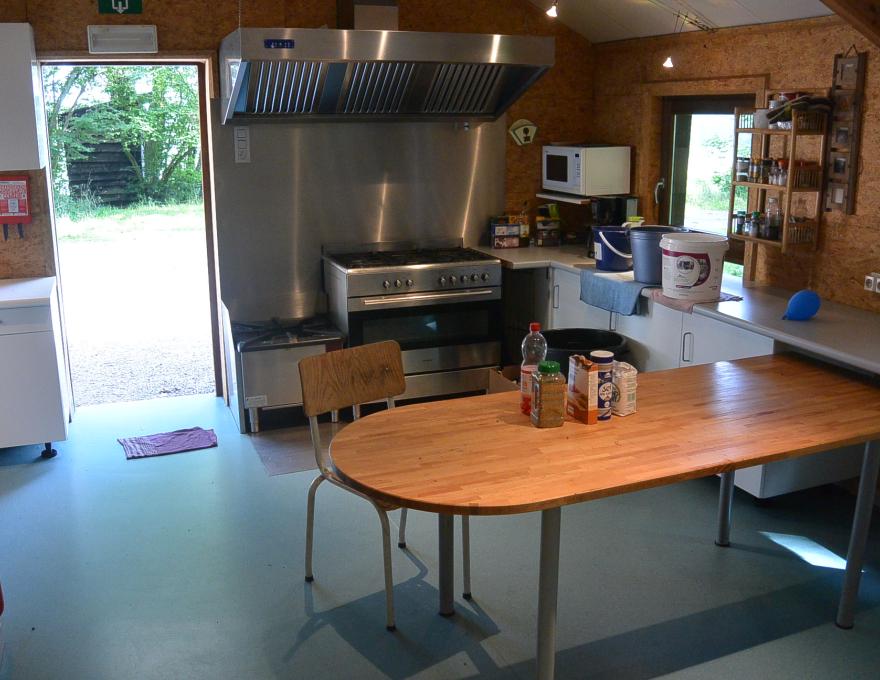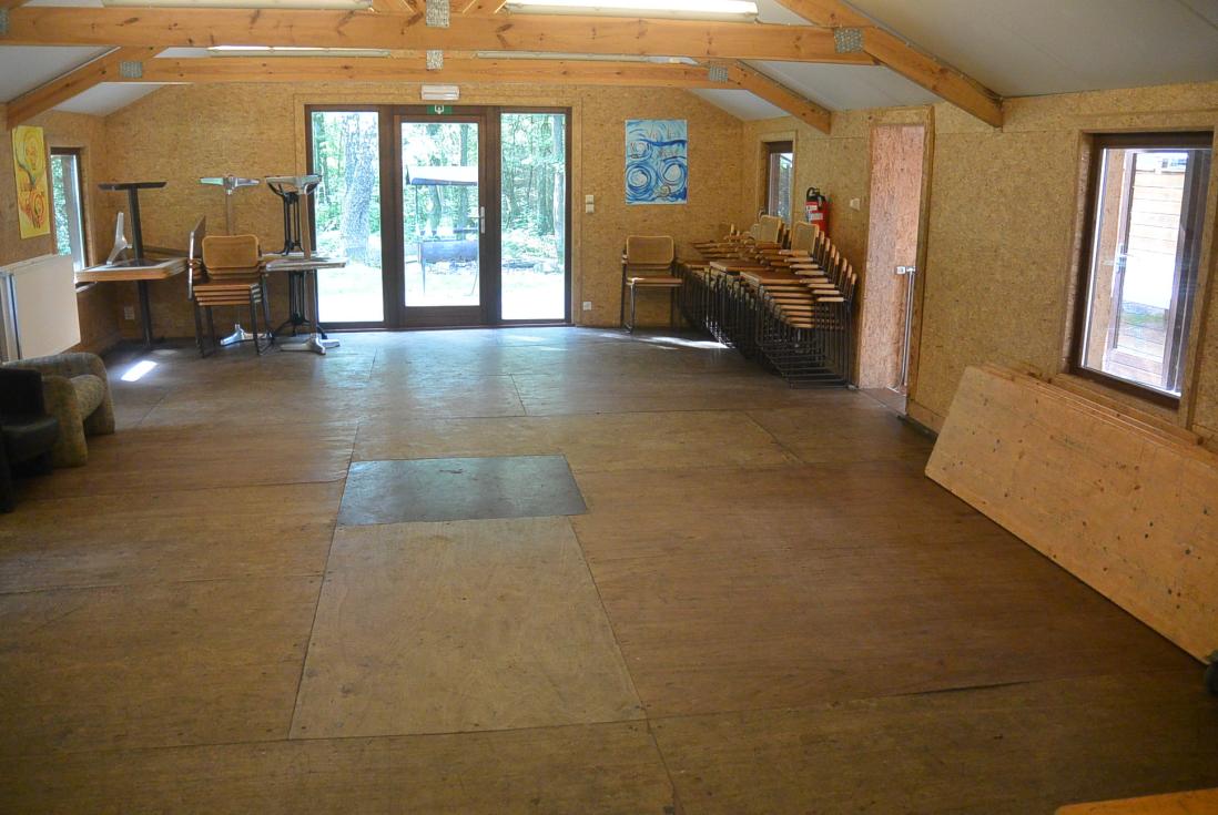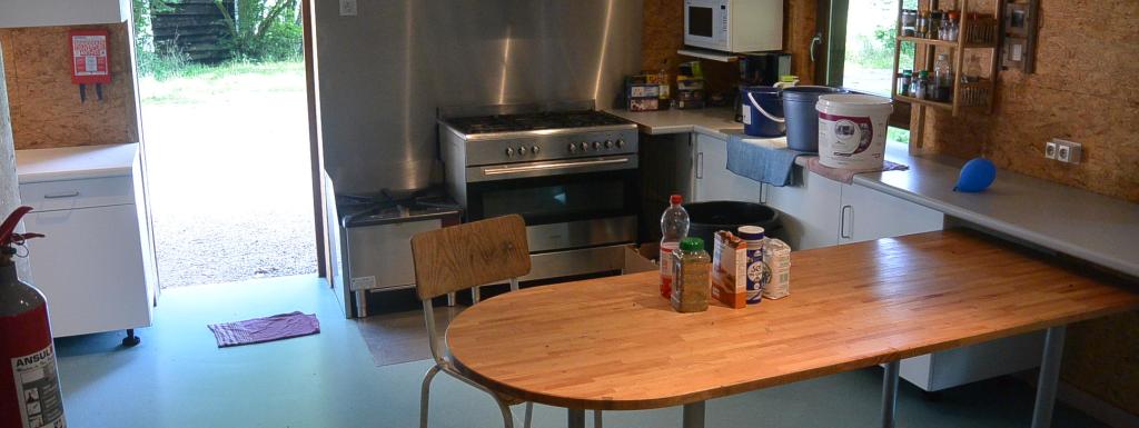 1 sas lumineux, réfectoire spacieux, cuisine équipée, 3 toilettes, 1 salle de douche avec 5 douches communes et 1 douche individuelle, 5 éviers, point d'eau à l'extérieur, bois et prairie à dispositions.