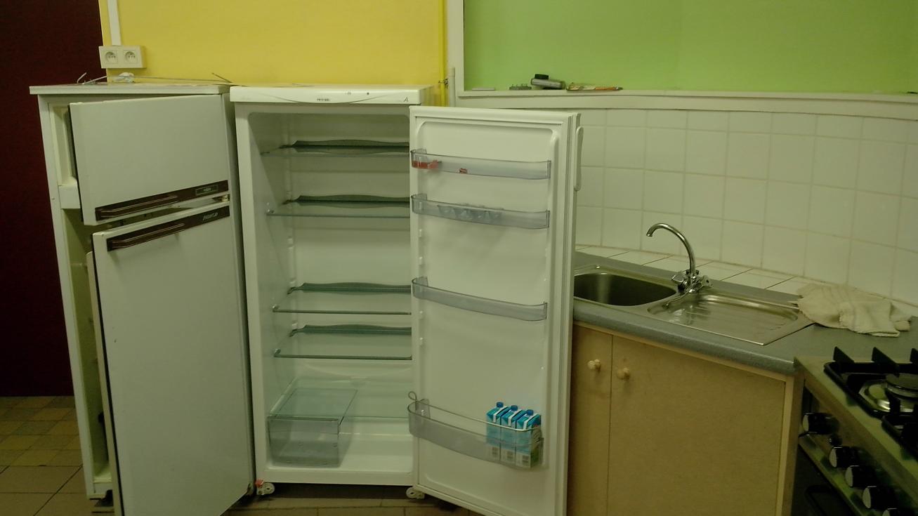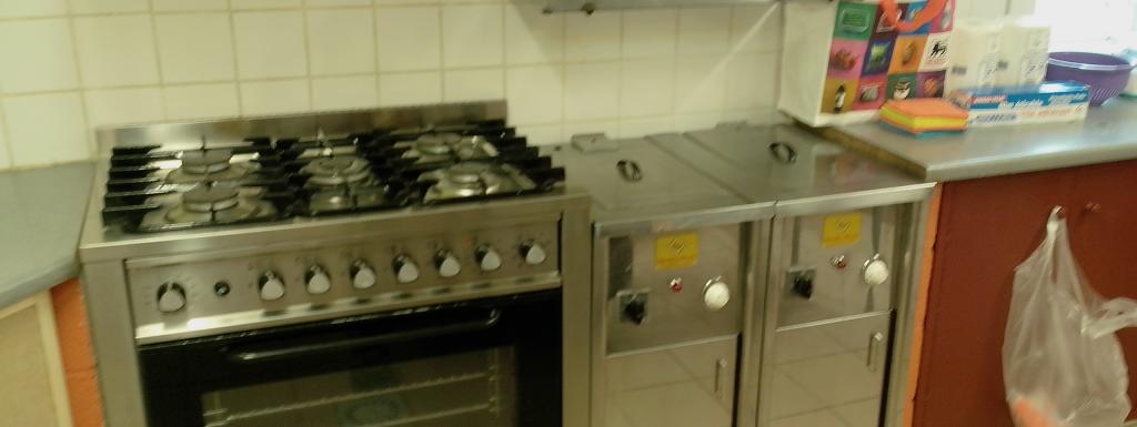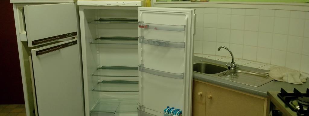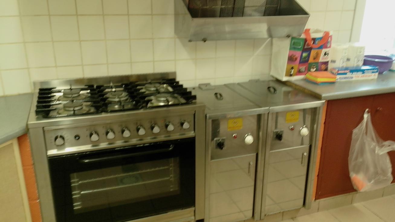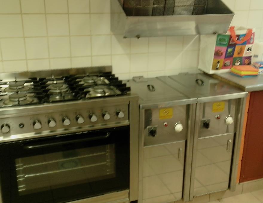 1 cuisine équipée de 2 frigos + +1 congélateur de 215L +1 cuisinière au gaz (5 becs) + 1 four électrique.