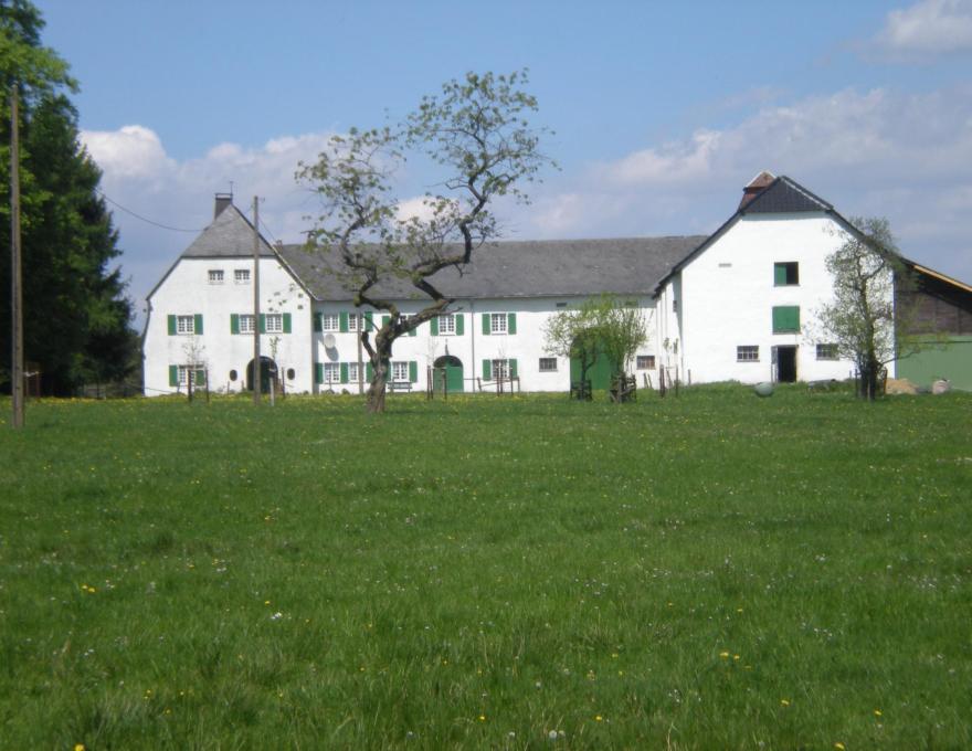 Ancienne ferme, entourée de champs et de bois. Le bâtiment accueille 150 enfants et dans les champs il y a beaucoup de place pour les tentes, pour des jeux. En dessous des grandes, vieux arbres, c'est le lieu idéal pour des jeux fantastiques. Près de la petite ville de St.Vith, avec commerce, hôpital, centre sportif, grand plaine de jeux, les courses sont vite faite et les enfants y arrivent par le RAVEL (chemin vélo de 150 km qui va de Aachen jusqu'au Luxembourg ou Trève)