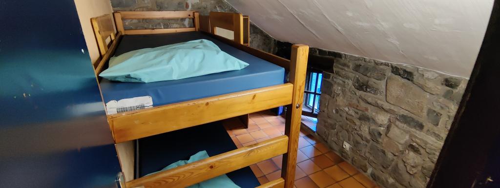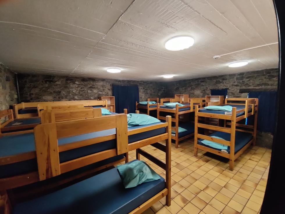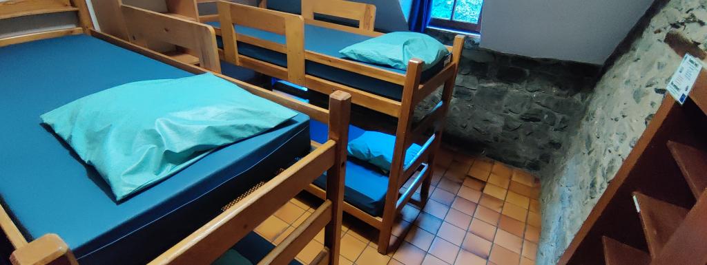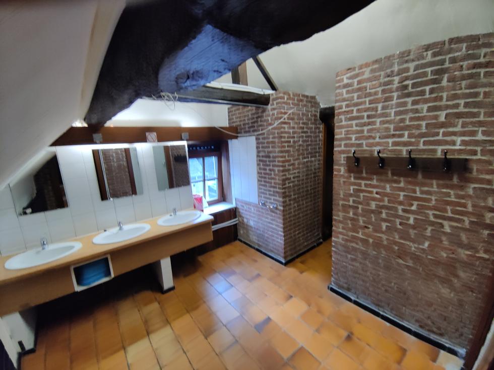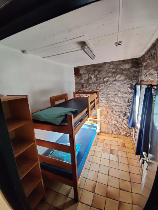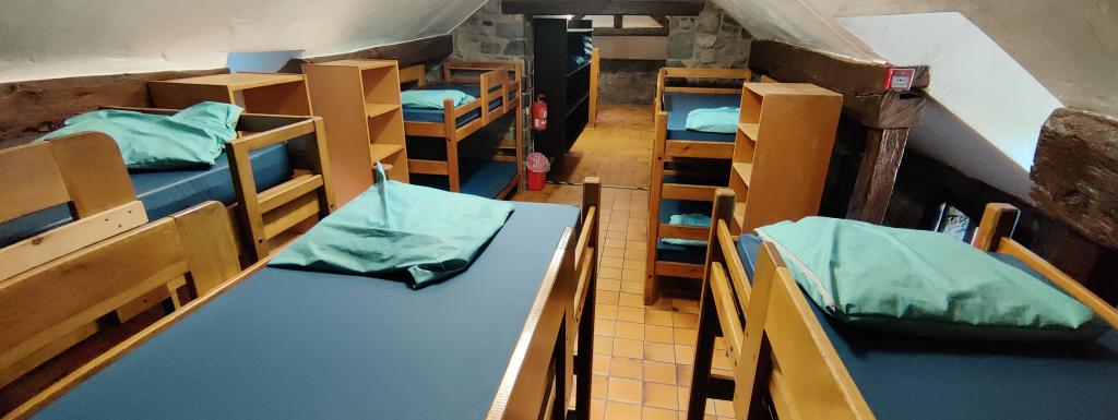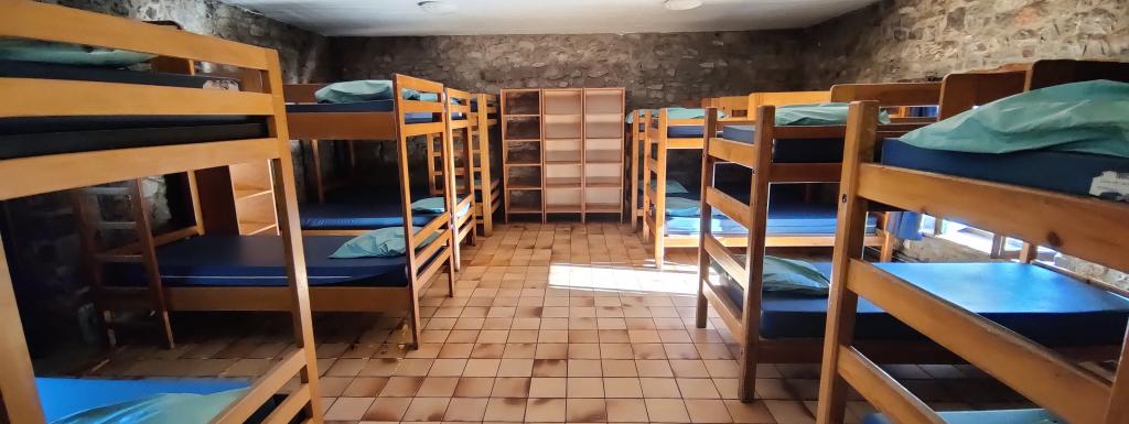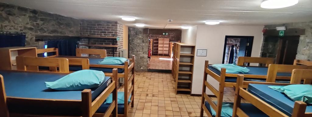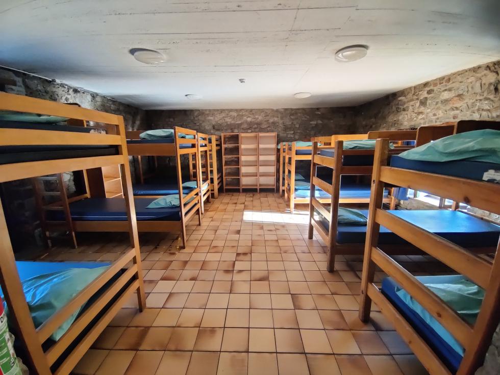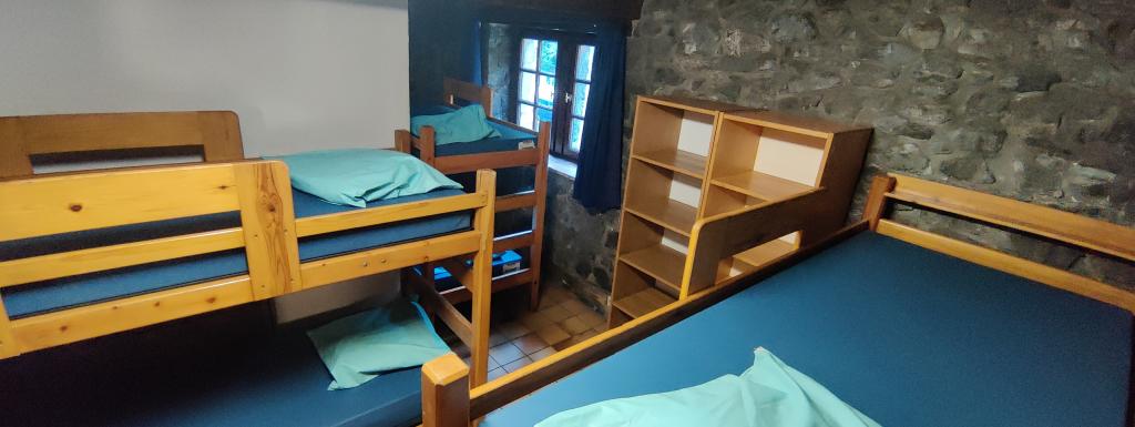 Bâtiment de 60 lits. Une cuisine équipée + vaisselle. Un réfectoir. Deux étages de dortoirs