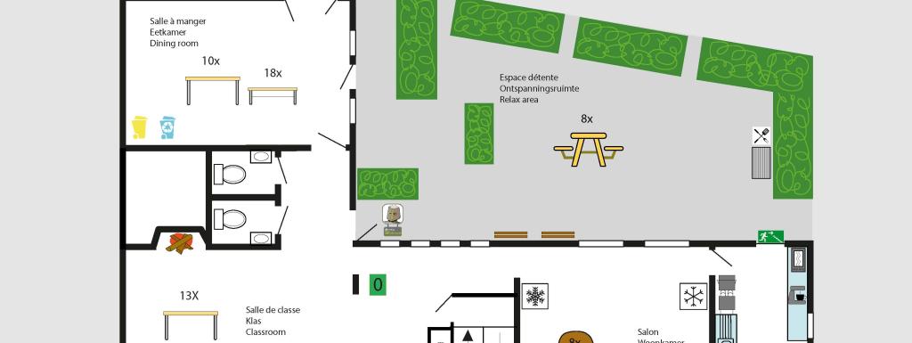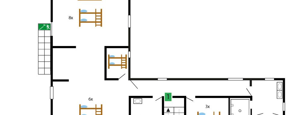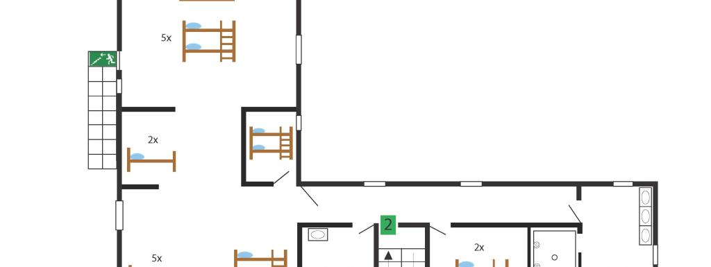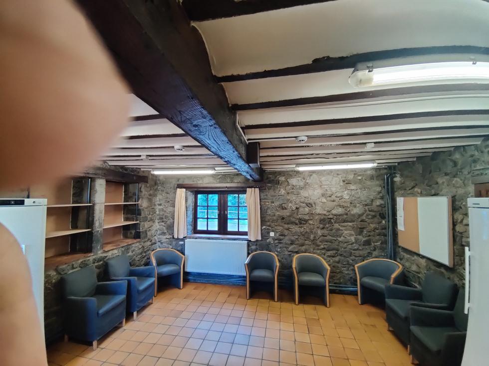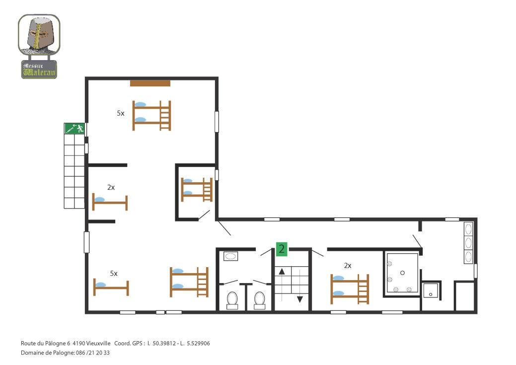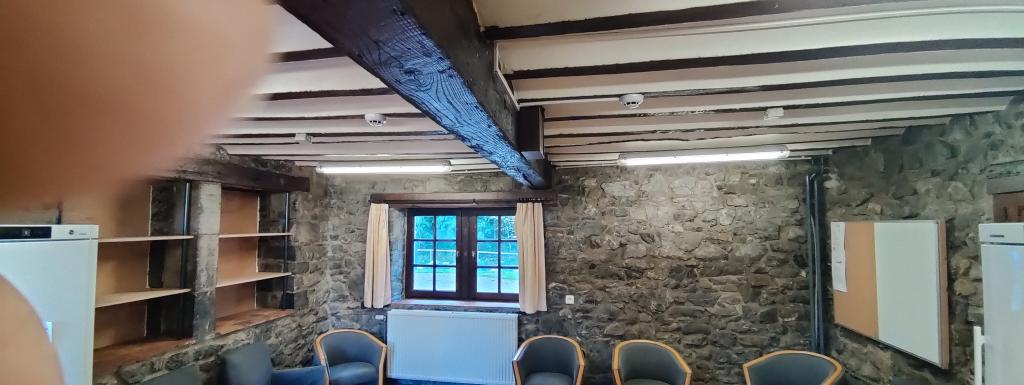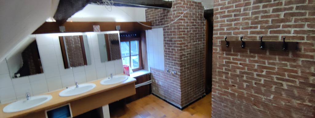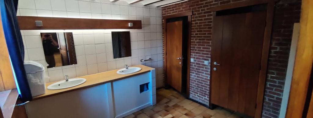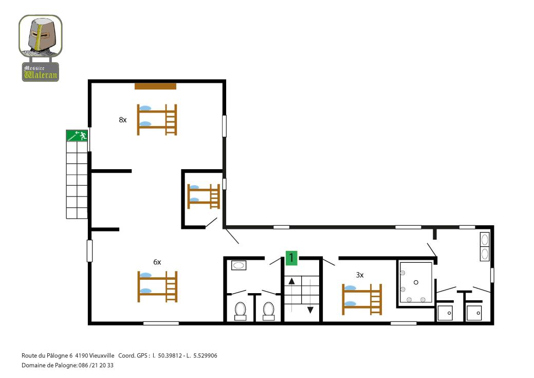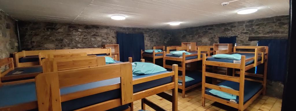 Bâtiment de 60 lits. Une cuisine équipée + vaisselle. Un réfectoir. Deux étages de dortoirs