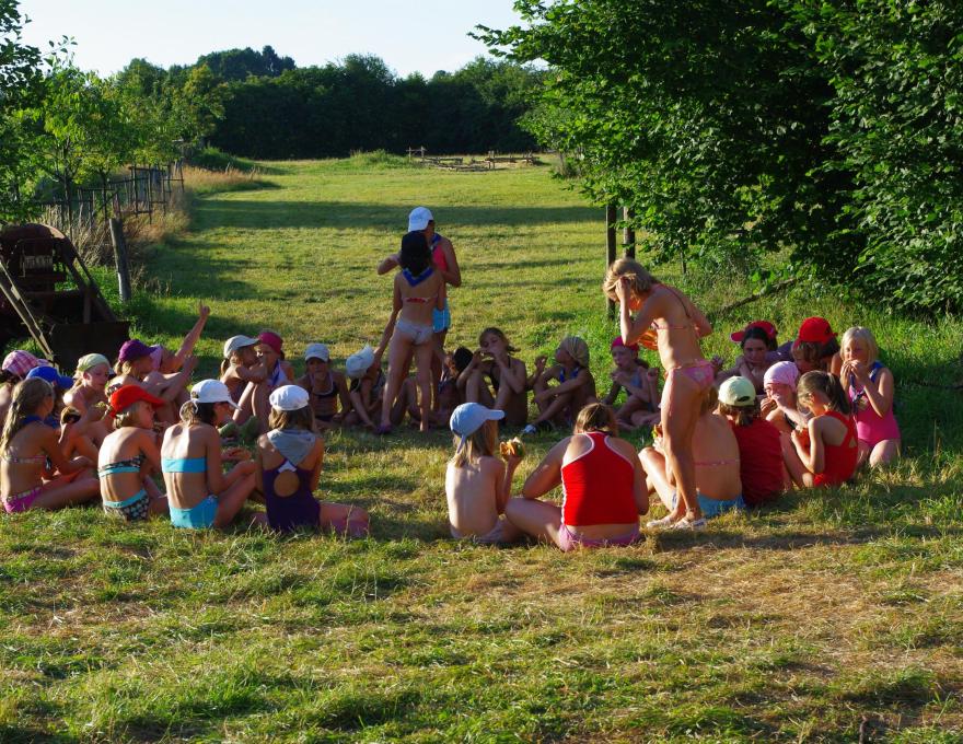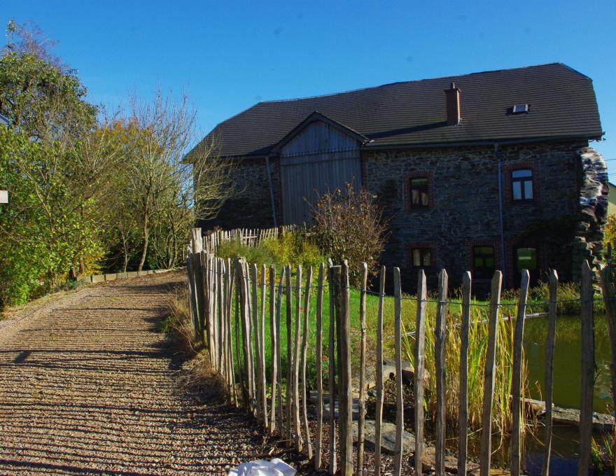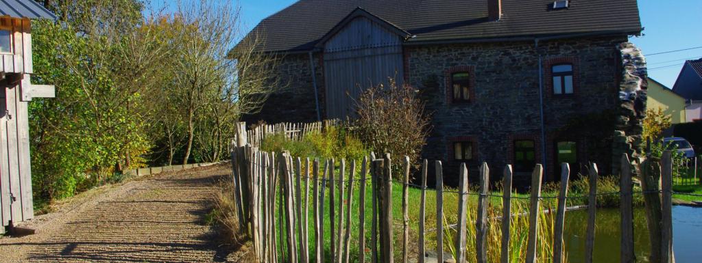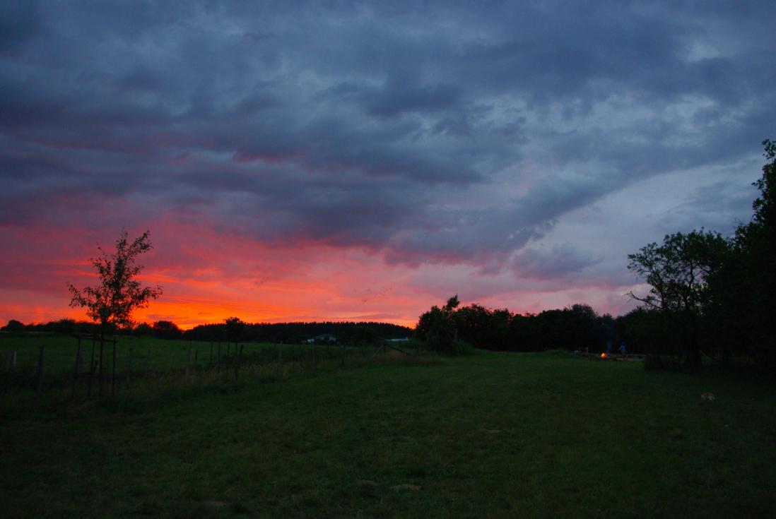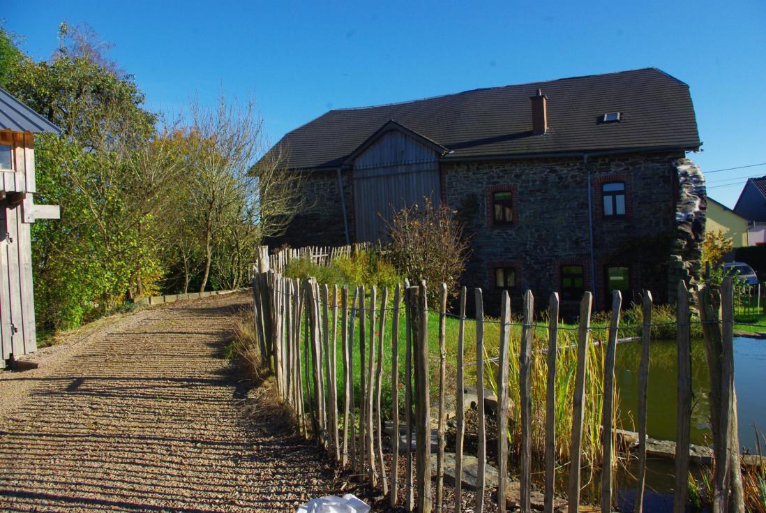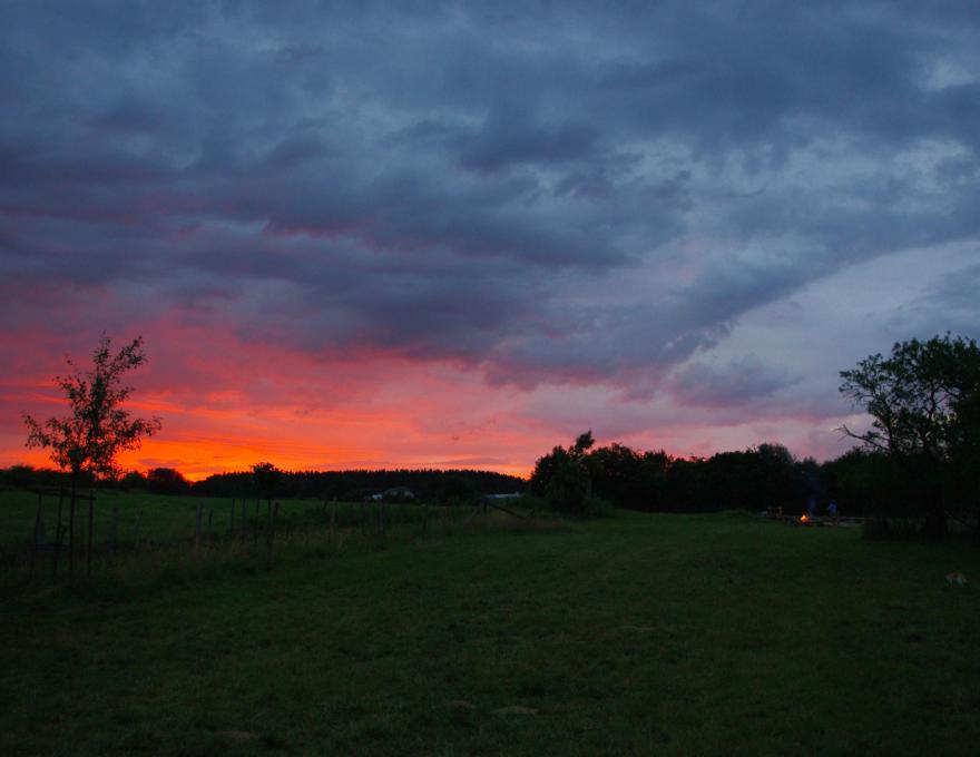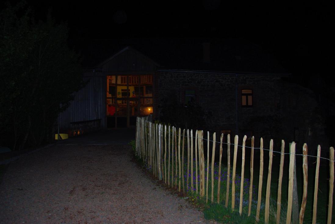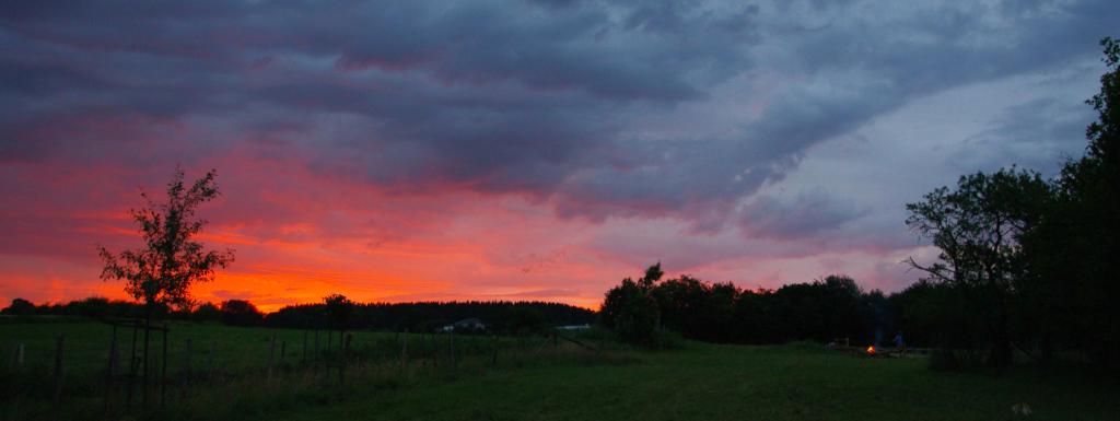 Il y a une grande prairie à l'arrière du gite avec un endroit pour faire du feu.