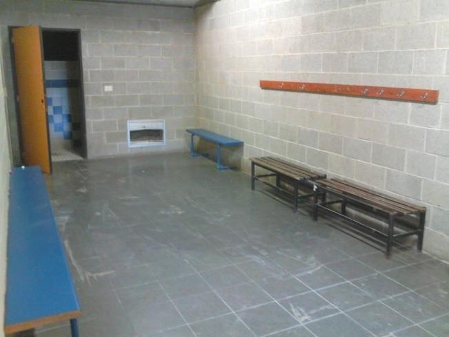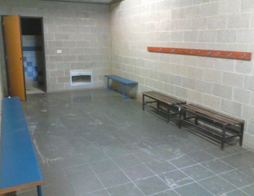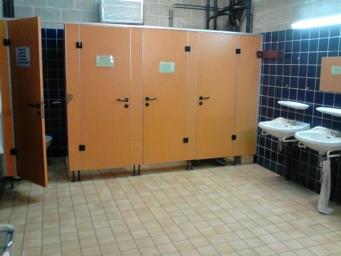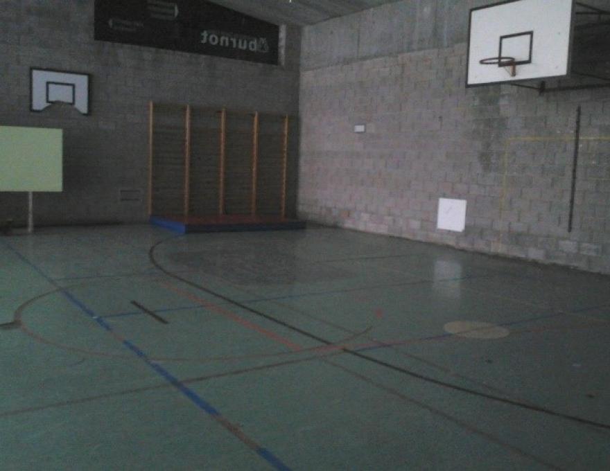 2 halls, 1 resto, 1 local pour matériel, 1 salle de gym (grandeur = terrain de mini foot), 2 vestiaires, 3 douches communes (pour les camps de juillet mais eau froide), différents "blocs" sanitaires.