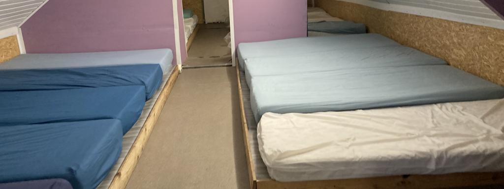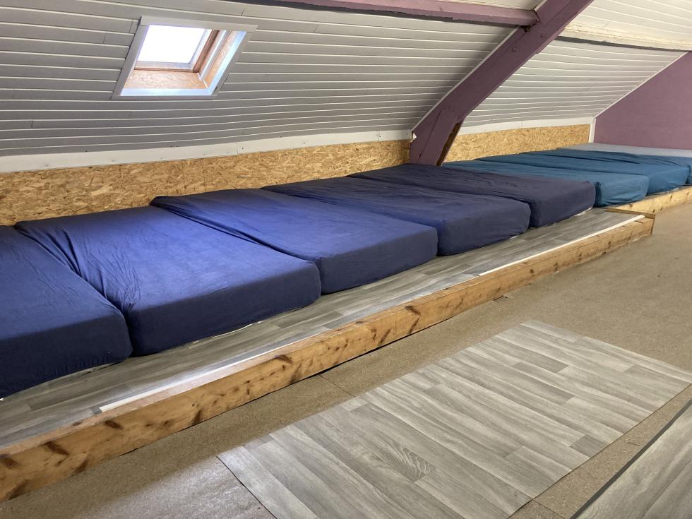 Dortoir équipé avec nouveaux matelas (pour les groupes de 13 pers à 23 pers - de 1 à 12 pers: logement dans le réfectoire (vous devez emportez votre matelas)