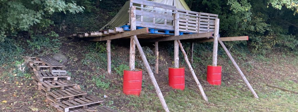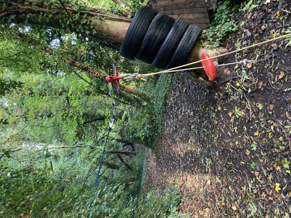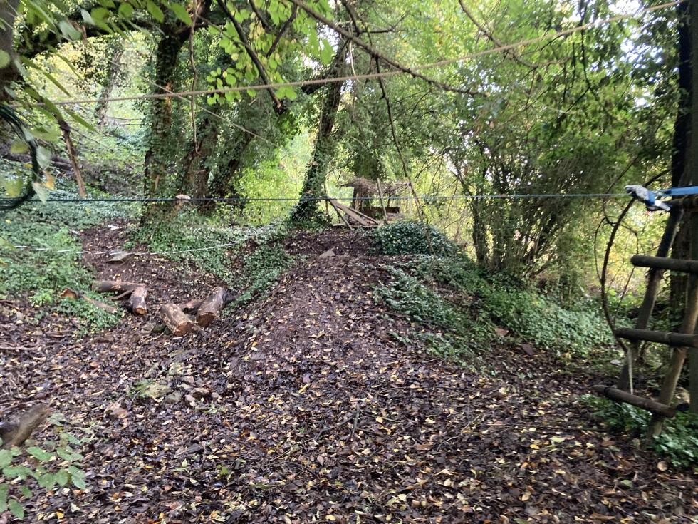 2 tyroliennes ( 1 de 45 m, 1 de 18 m), petits parcours dans les bois