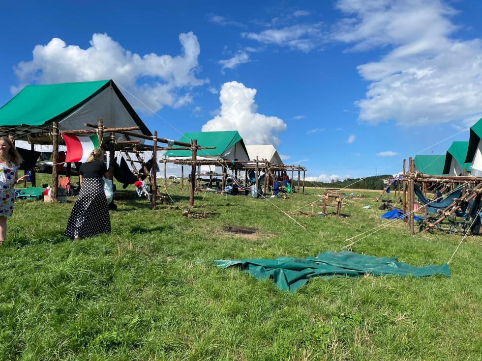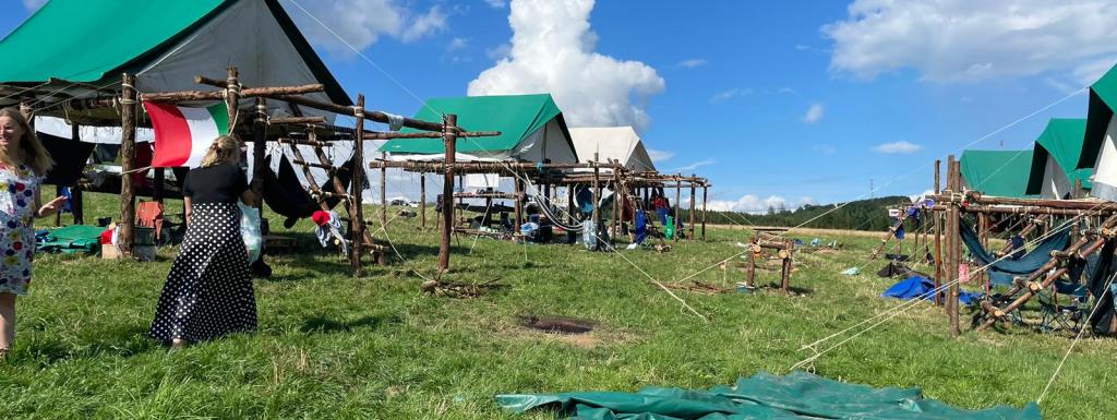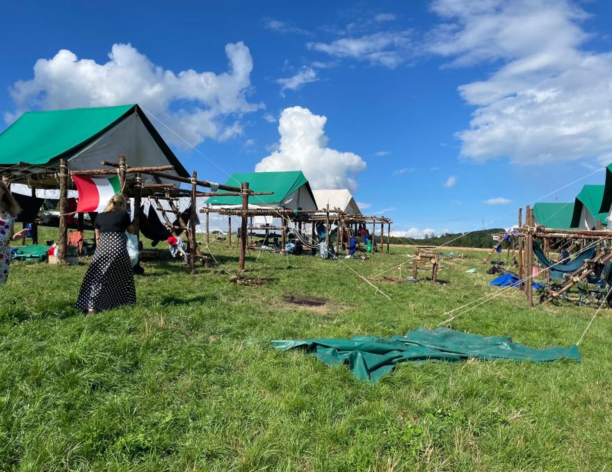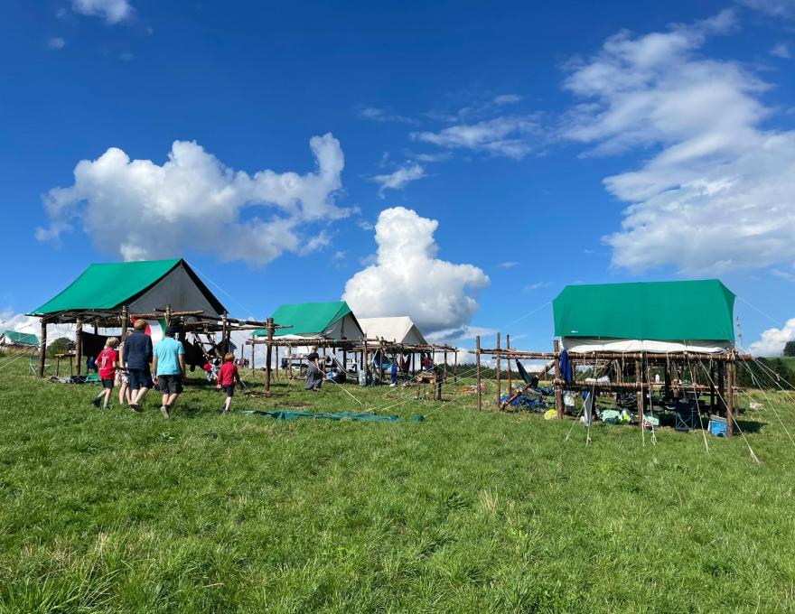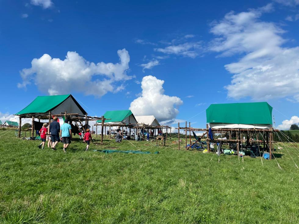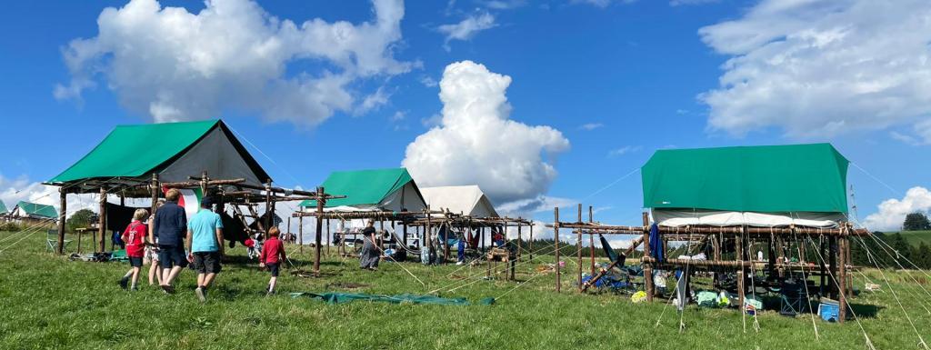 La praire peut être facilement répartie en plusieurs espaces (staff, intendance, tentes de patrouilles, ...)