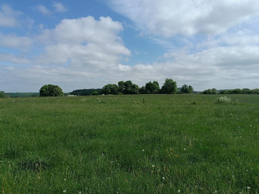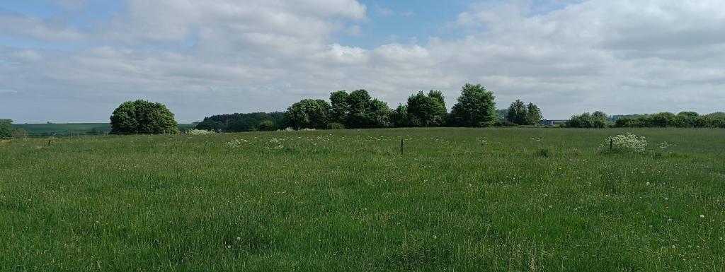 Belle prairie plate et bien large de 3ha avec une jolie vue sur les plaines environnantes.