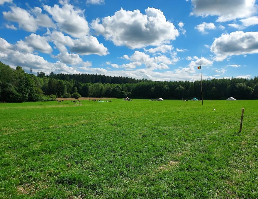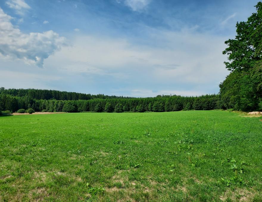 Très grande prairie isolée, en bordure de la forêt d'Anlier.