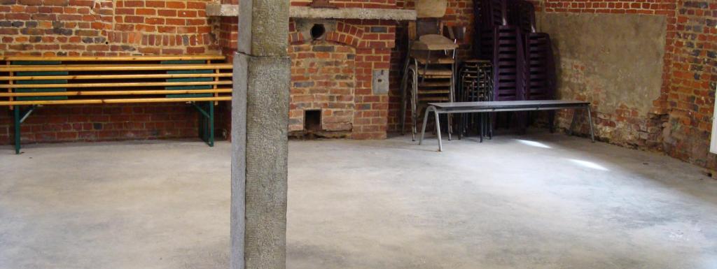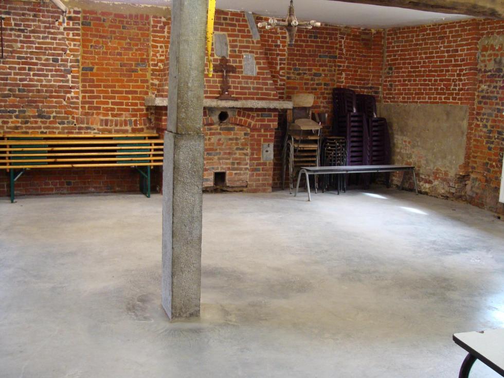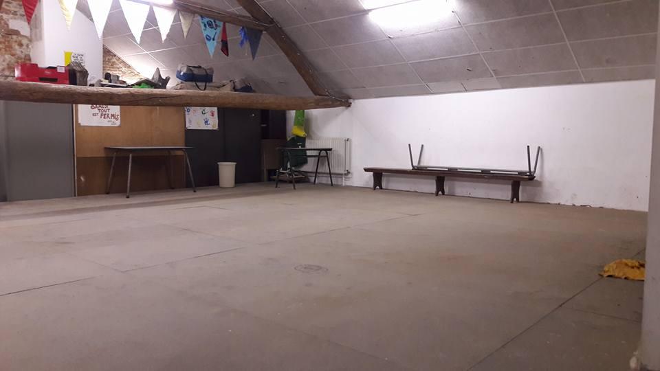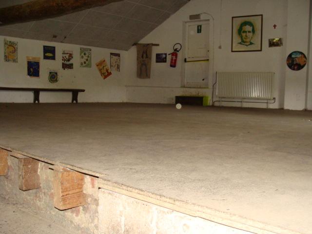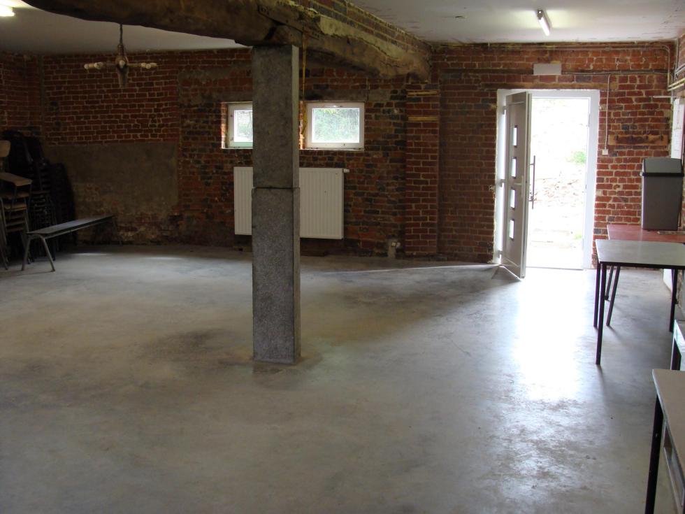 Le local se compose de deux salles principales : l'une de 12 m sur 8 au rez de chaussée (réfectoire), et l'autre de 12 m sur 12 à l'étage (dortoir). Mais aussi d'une cuisine entièrement rénovée (cuisinière au gaz semi-industrielle 5becs, plan de travail, étagères et armoires de rangement en inox, 3 frigos, 1 congélateur), 3 douches eau chaude, 3 WC, 2 urinoirs, 4 éviers). Vaste prairie emmurée attenante au local (possibilité d'y planter des tentes et d'y faire des constructions). Chauffage central