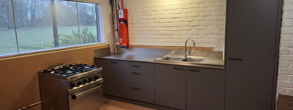 Intérieur: un dortoir max 30 pers (sans lit);un réfectoire avec tables et bancs, une cuisine avec évier cuisinière au gaz de ville (pas de four), frigo, congélateur; 3 wc et 3 douches communes