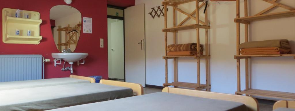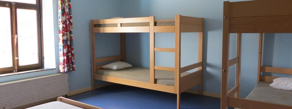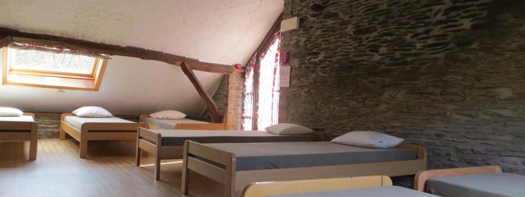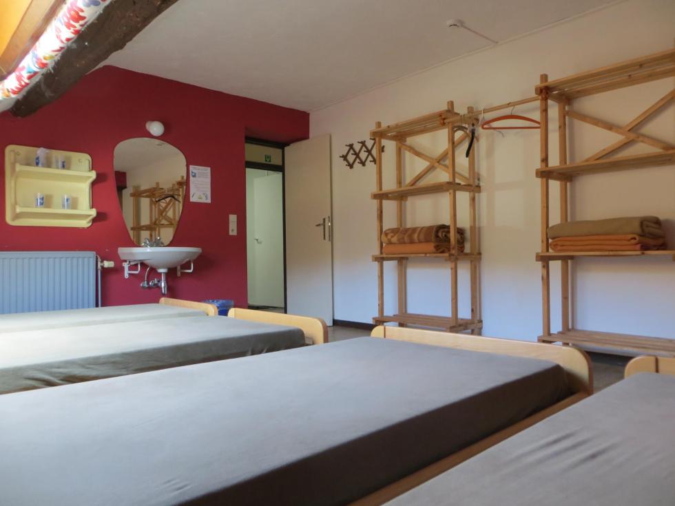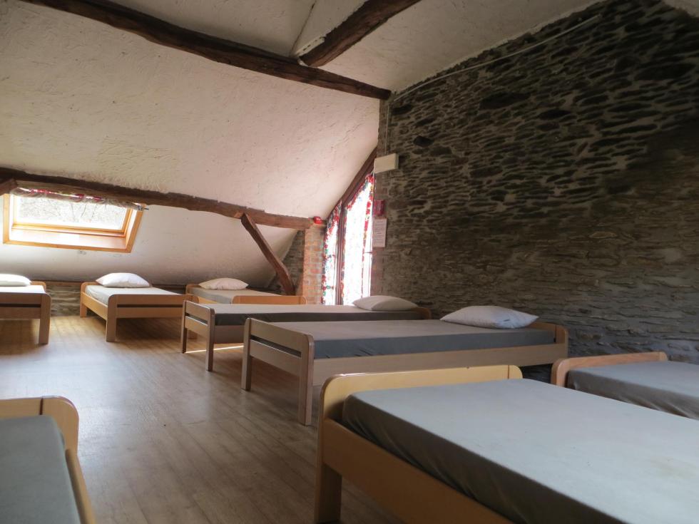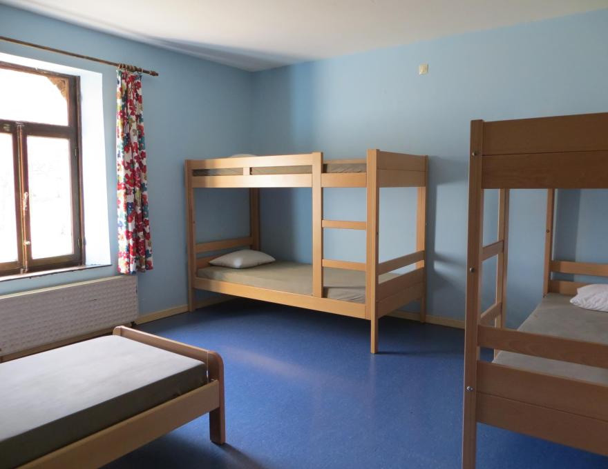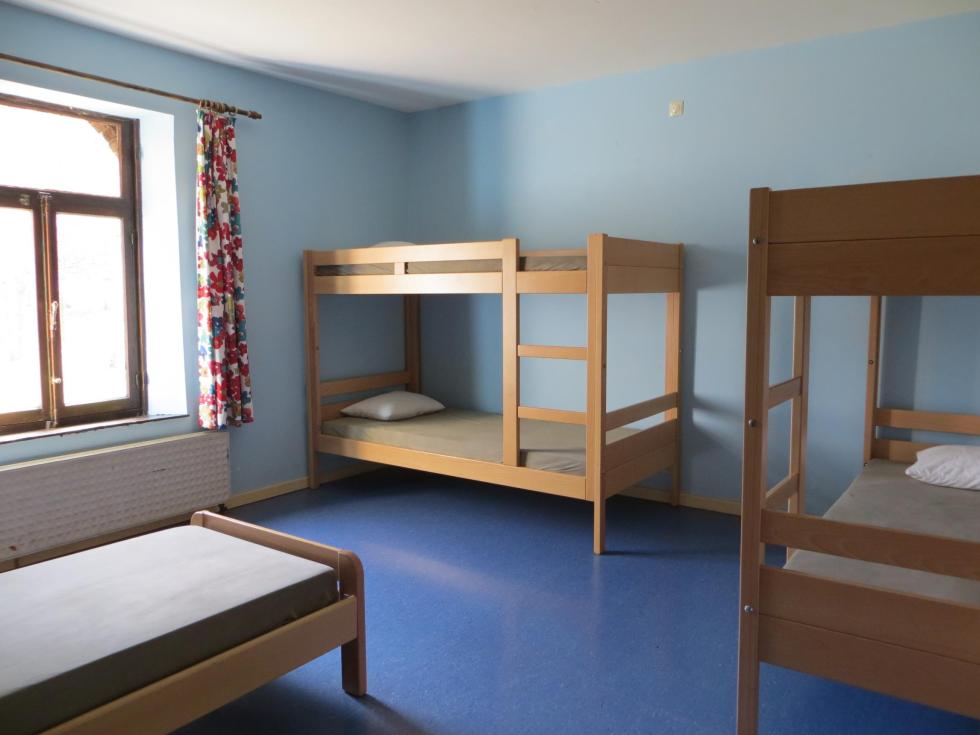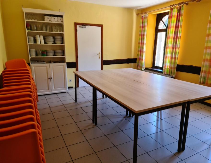 une grande salle de 60 m² avec feu ouvert, une salle à manger, une cuisine équipée avec batterie de cuisine et vaisselle, un salon avec feu ouvert, 3 douches et 1 toilette, une chambre pour 4 personnes avec lavabo, chauffage central au mazout.