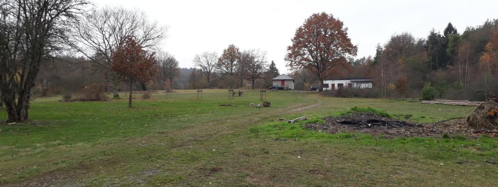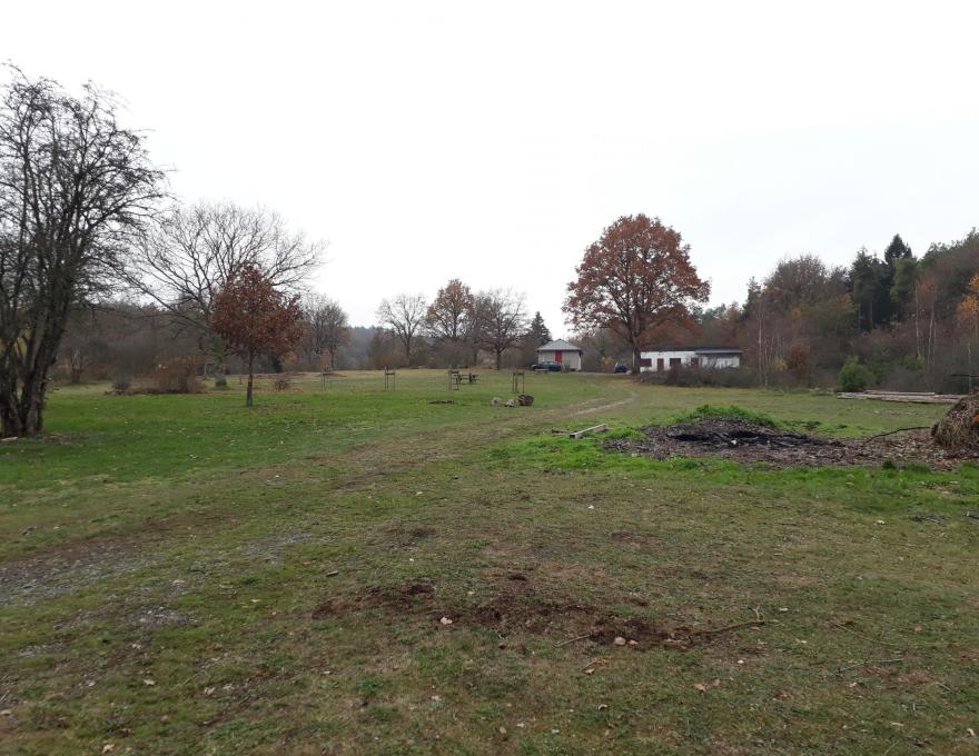 Terrain de 2.5 ha, divisé en deux terrains de camp avec espace neutre au milieu, bordé de bois. Eau et électricité disponible sur place. Une remise est à disposition pour les frigos.