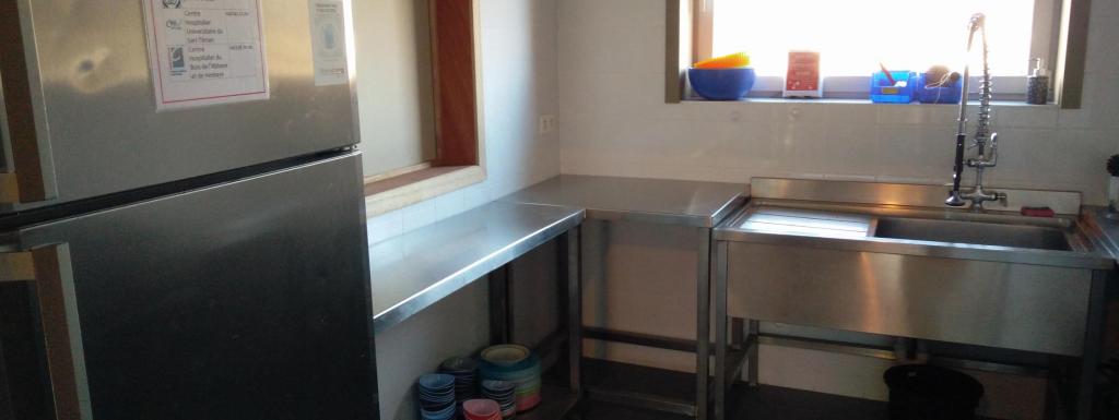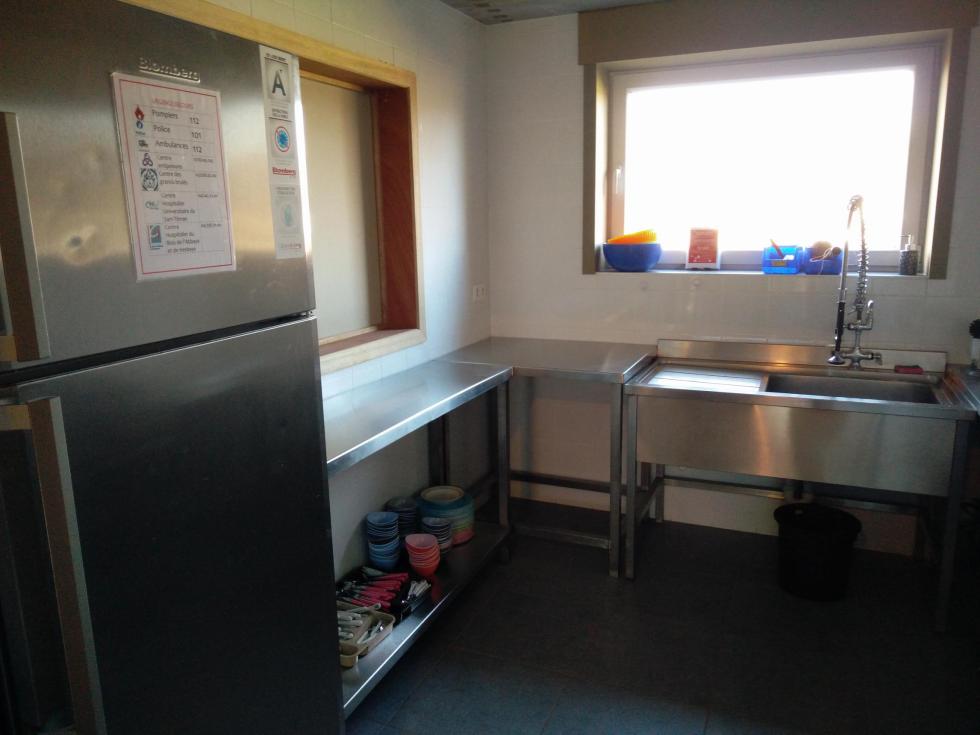 -Rez-de-chaussée: local de 26m² + local de 61m² + cuisine équipée (y compris matériel de cuisine et vaisselle pour 35 personnes) + sanitaires (5 éviers, 4 douches, 4 WC dont un pour PMR);
