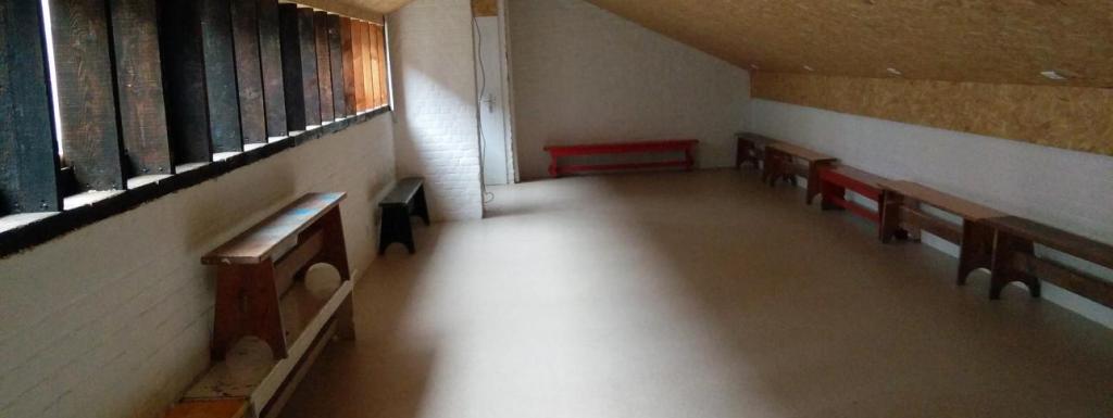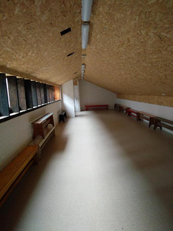 Pour les groupes entre 26 et 35 personnes, utilisation obligatoire d'un local supplémentaire (complètement rénové également) au premier étage du bâtiment adjacent (Église-Maison, située à 5 mètres), d'environ 48m². Ce local est également disponible pour les plus petits groupes, sur demande.