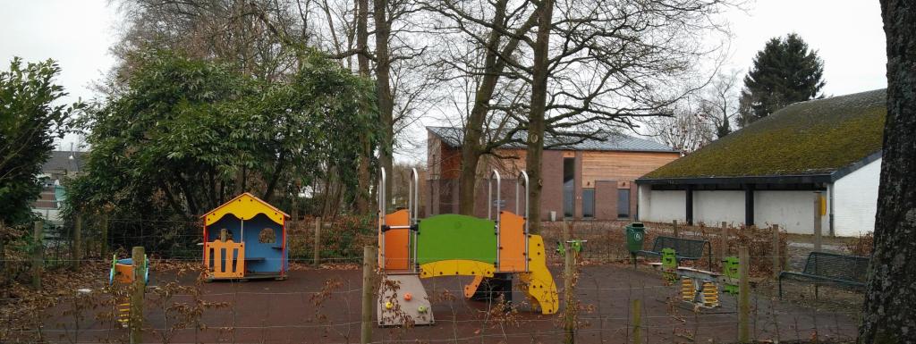 Petite plaine de jeux et terrain de jeux sur place, petit terrain de foot, espace en dur et bois à proximité (200m), accès aisé en bus, boulangerie et surface commerciale à 1,5km, piscine à 2km.