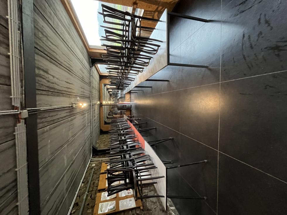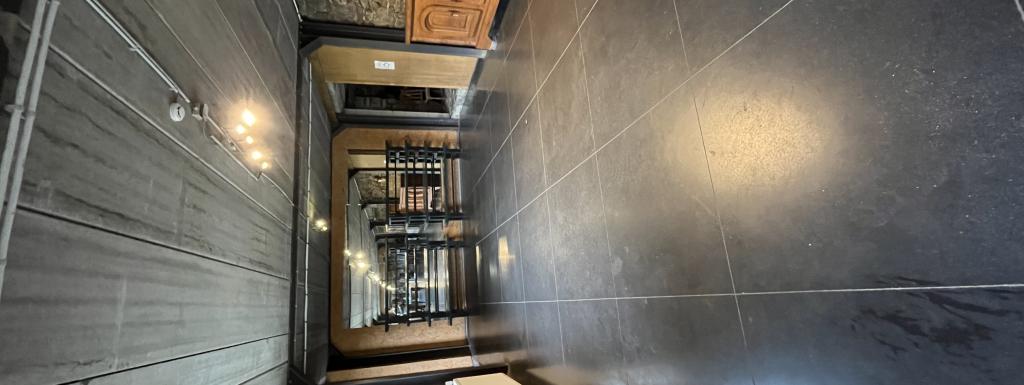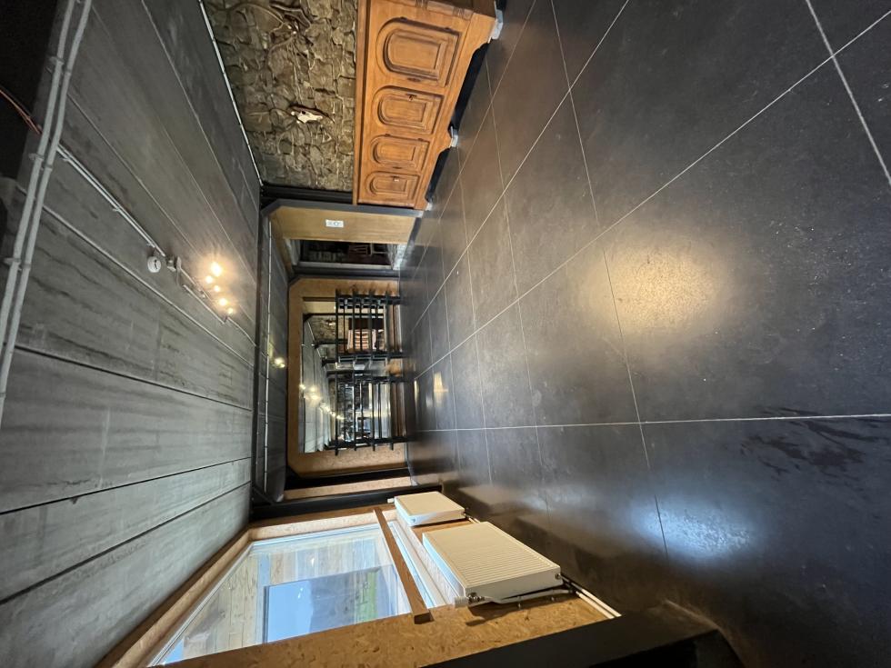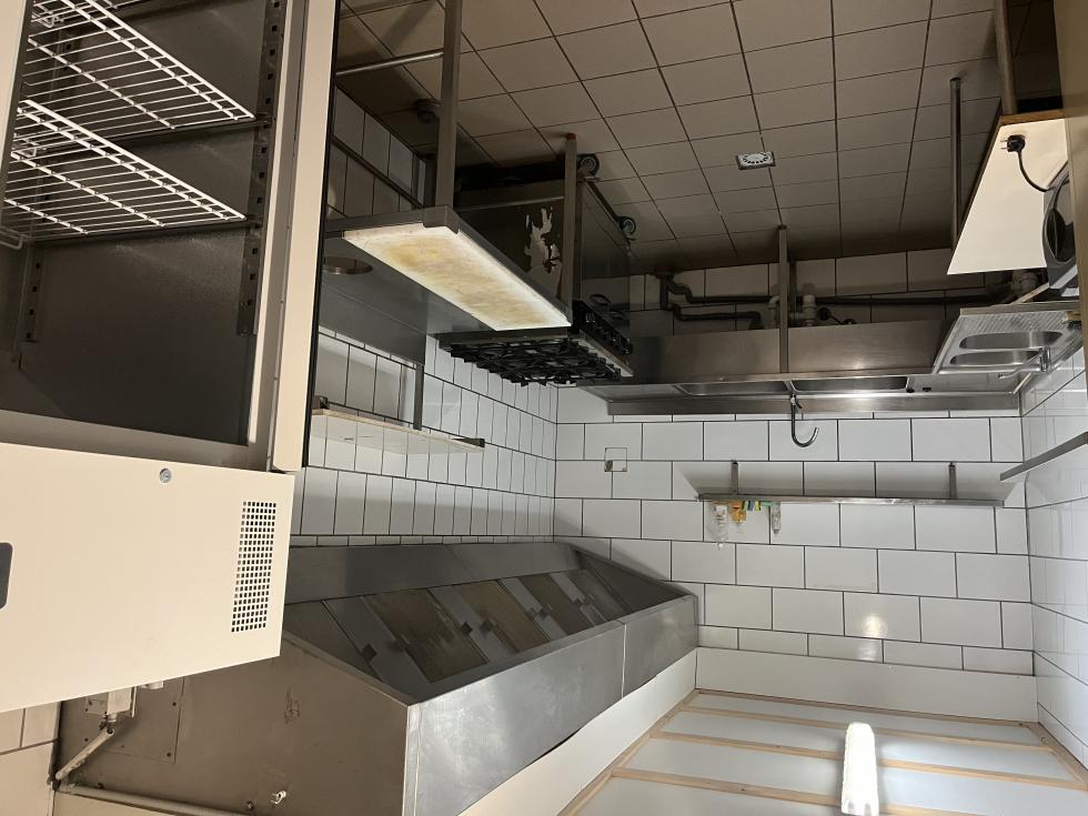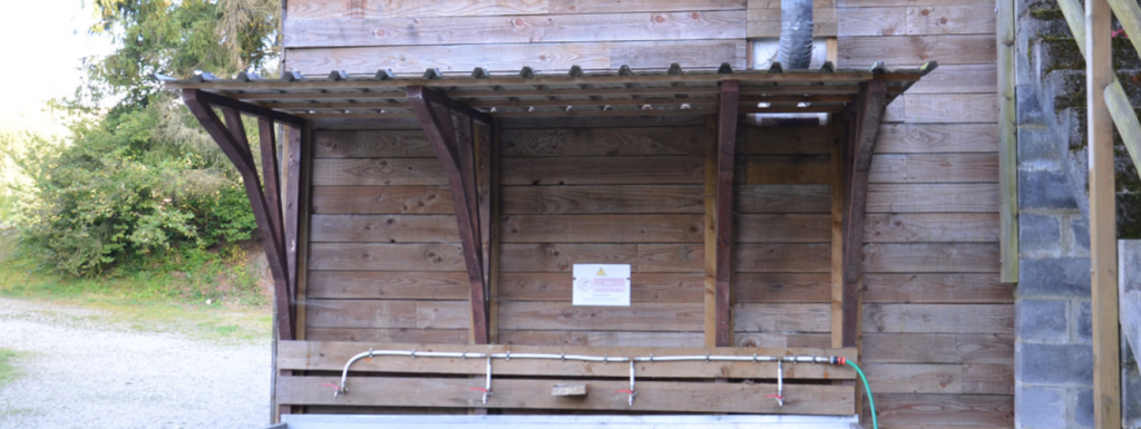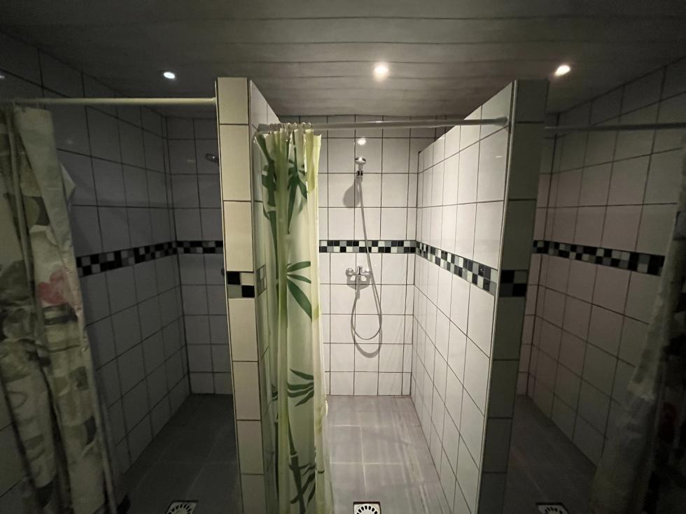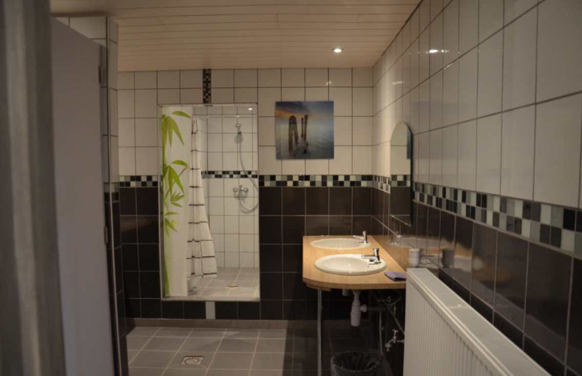 Le bâtiment : • Au rez-de-chaussée : une grande salle-réfectoire de 120 m² avec tables et chaises pour 60 personnes donnant sur le jardin ; une grande salle de 50 m² pour les chefs (malles, QG,…) et/ou pour activités d’intérieur ; une cuisine « scoute » avec 4 gros becs à gaz (pas de four, ni casseroles, ni ustensiles de cuisine!) et une cuisinière domestique, grands éviers, hotte, 2 frigos et 1 surgélateur + 3 WC et lave-mains.