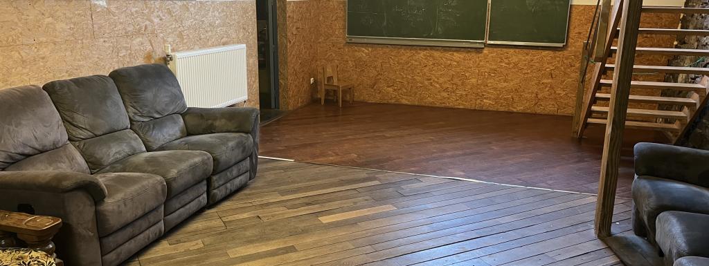 • Inaccessible aux mouvements de jeunesse, le 2ème étage : une mezzanine « découpée » en chambres (pour les « classes vertes »). Si besoin, pour les animateurs et/ou intendants, des chambres de 6-8 personnes peuvent être « louées » au prix de 50 €/chambre/w-e ou 120 €/chambre/camp.