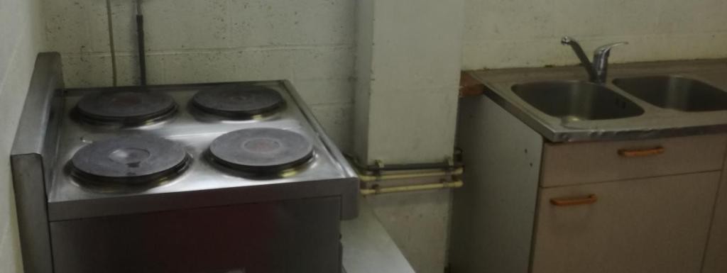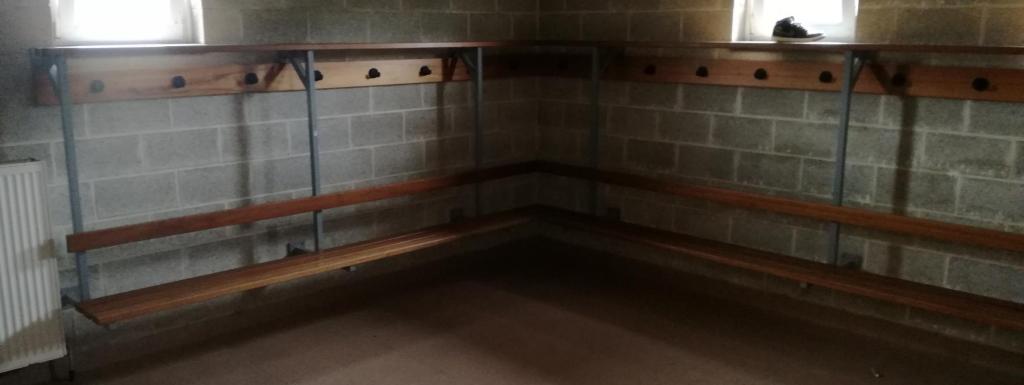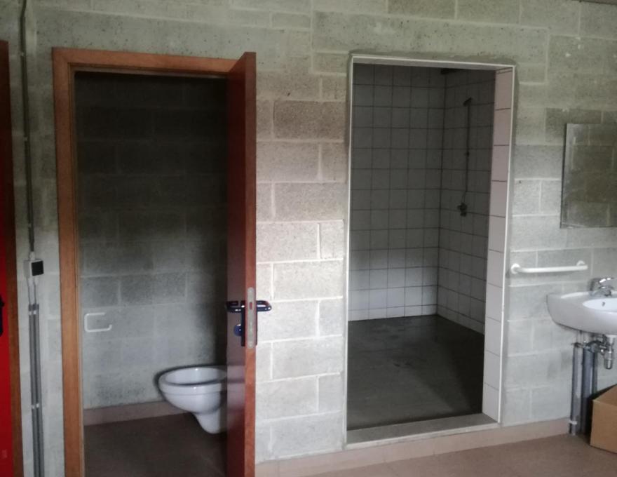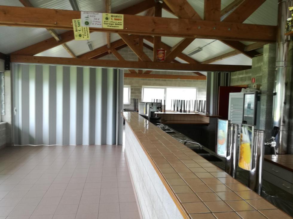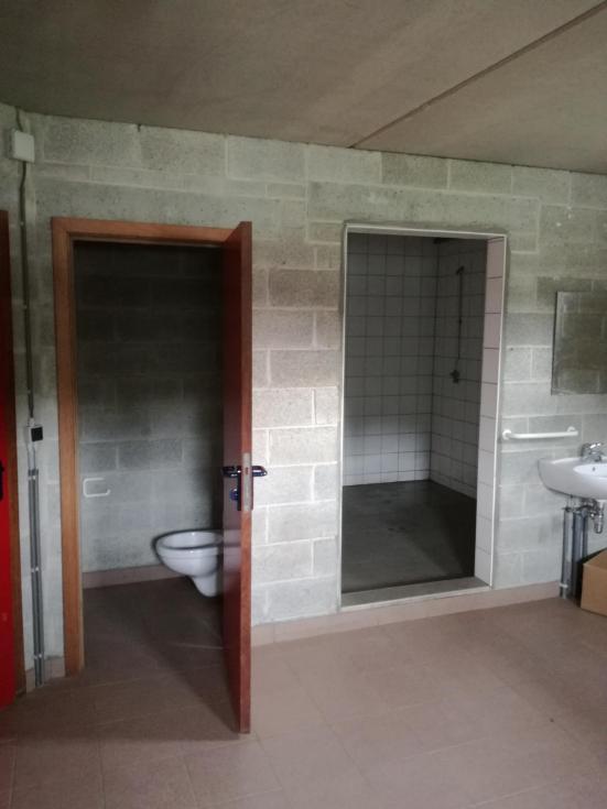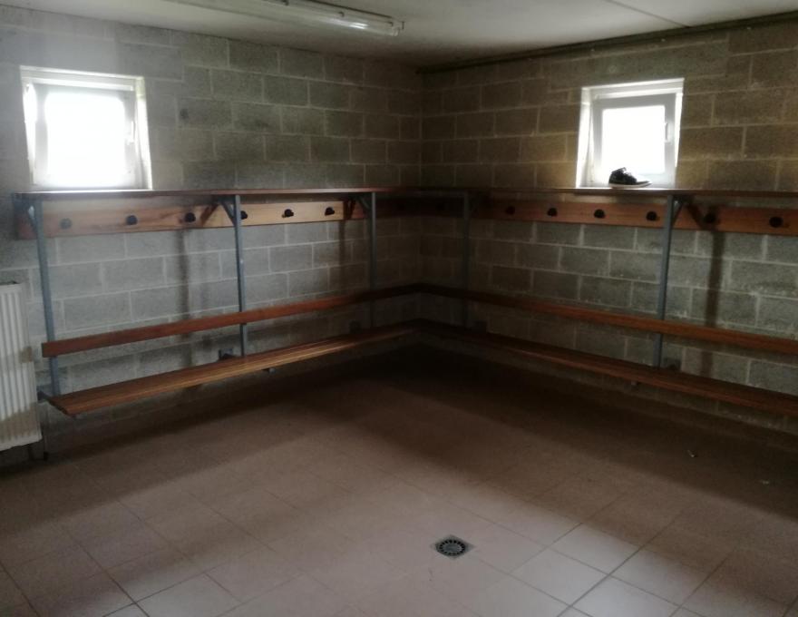 Batiment de club de foot avec à l'étage une grande buvette, cuisine ( frigo cuisinière, four, lave vaisselle, vaiselle, etc.. ) et WC et au rez 4 grands vestiaires chacun équipés de 6 douches pouvant être coupées individuellement et wc,2 petits vestiaires avec 1 douche individuelle, local de rangement matériel.Terrain de foot à votre disposition, possibilité de faire feux de camp, barbecue. Possibilité de planter des tentes. WIFI DISPONIBLE GRATUIT + TV