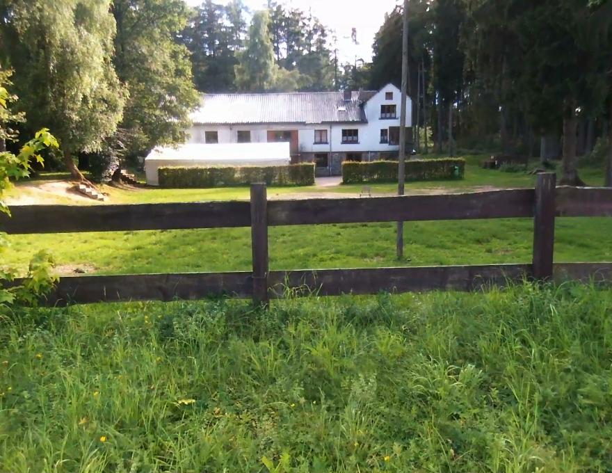 Grand bâtiment 3 étages entouré de bois, pelouses et clairières avec gare SNCB (Graide-Station) à 500 mètres.