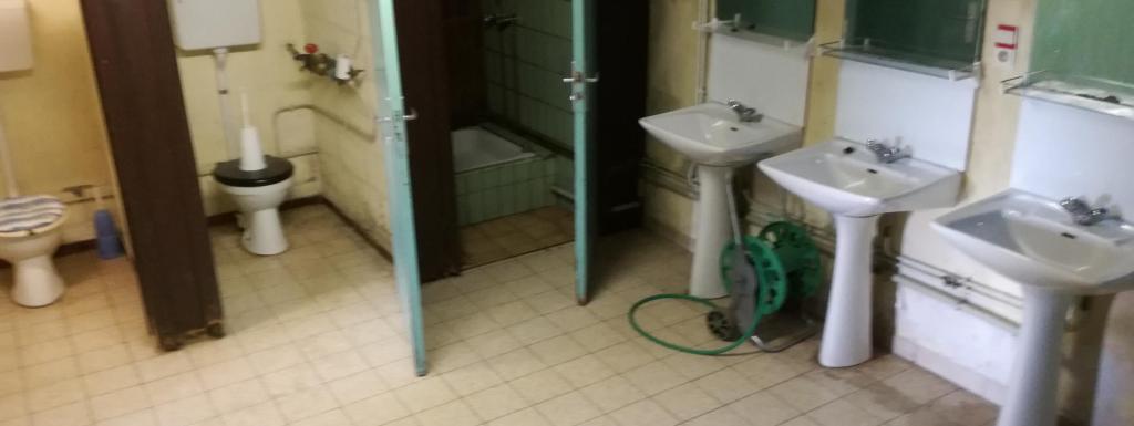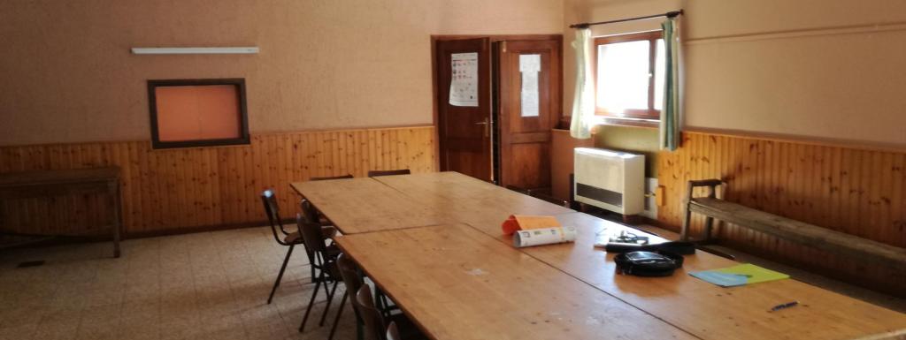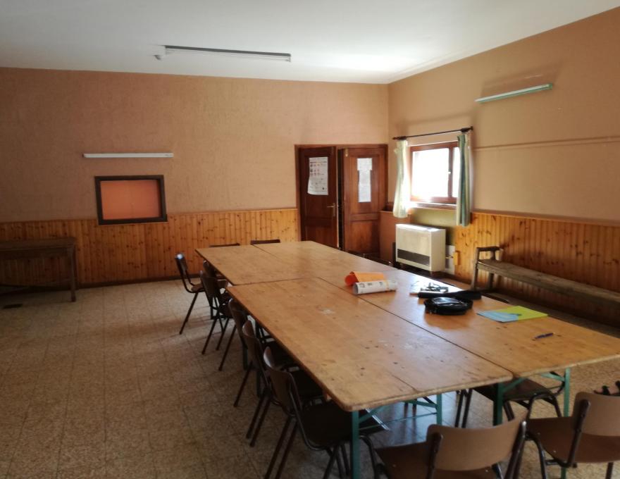 Grand réfectoire, dortoirs, salle d'eau, cuisine équipée, prairie, parking.