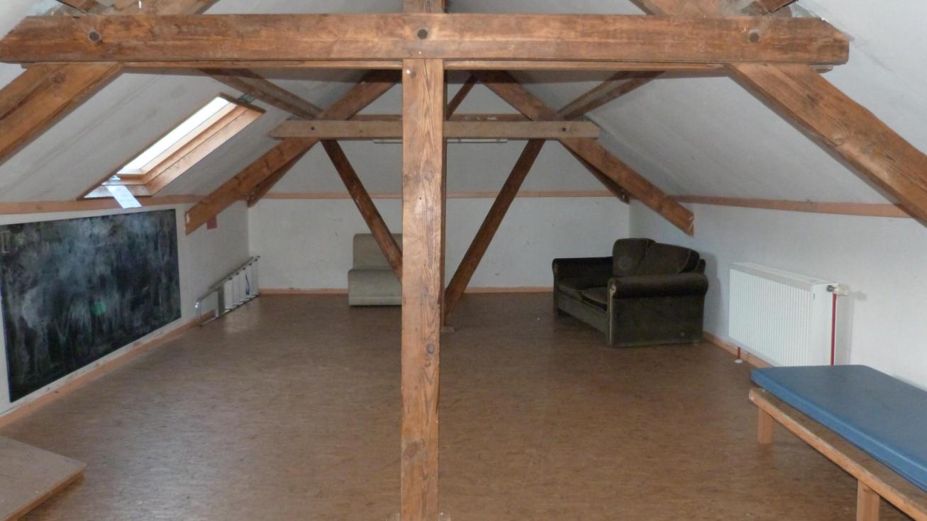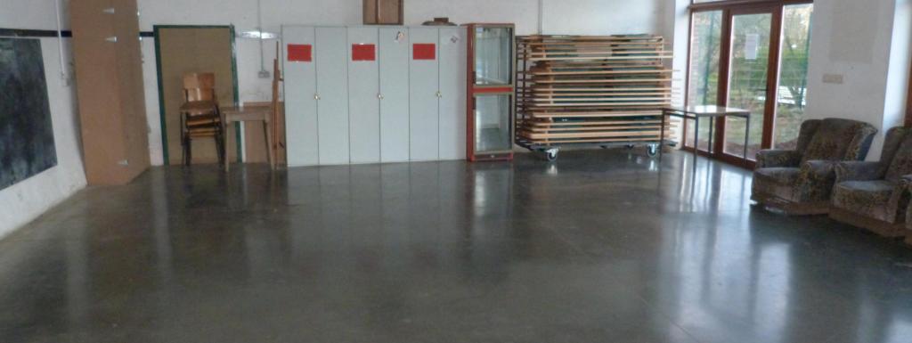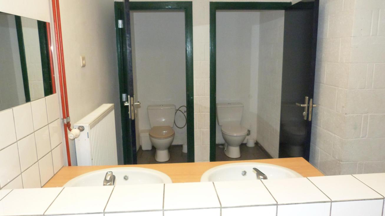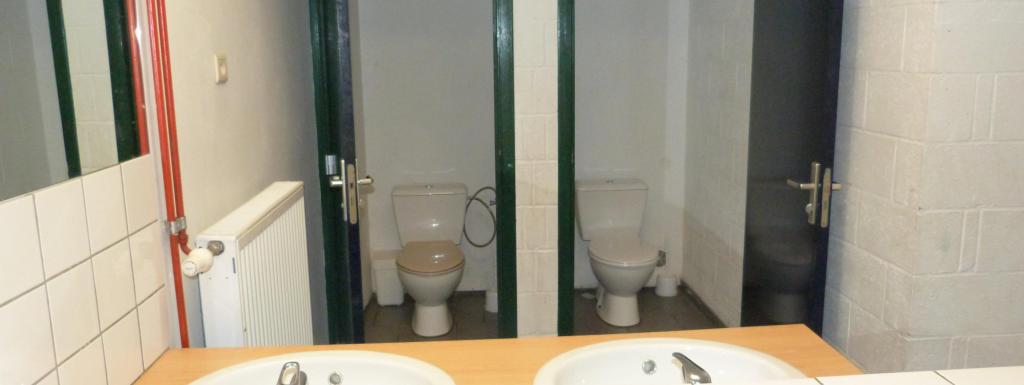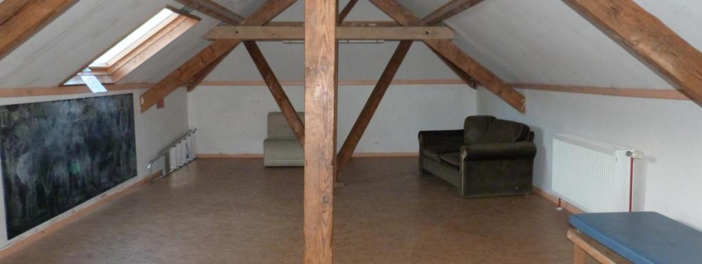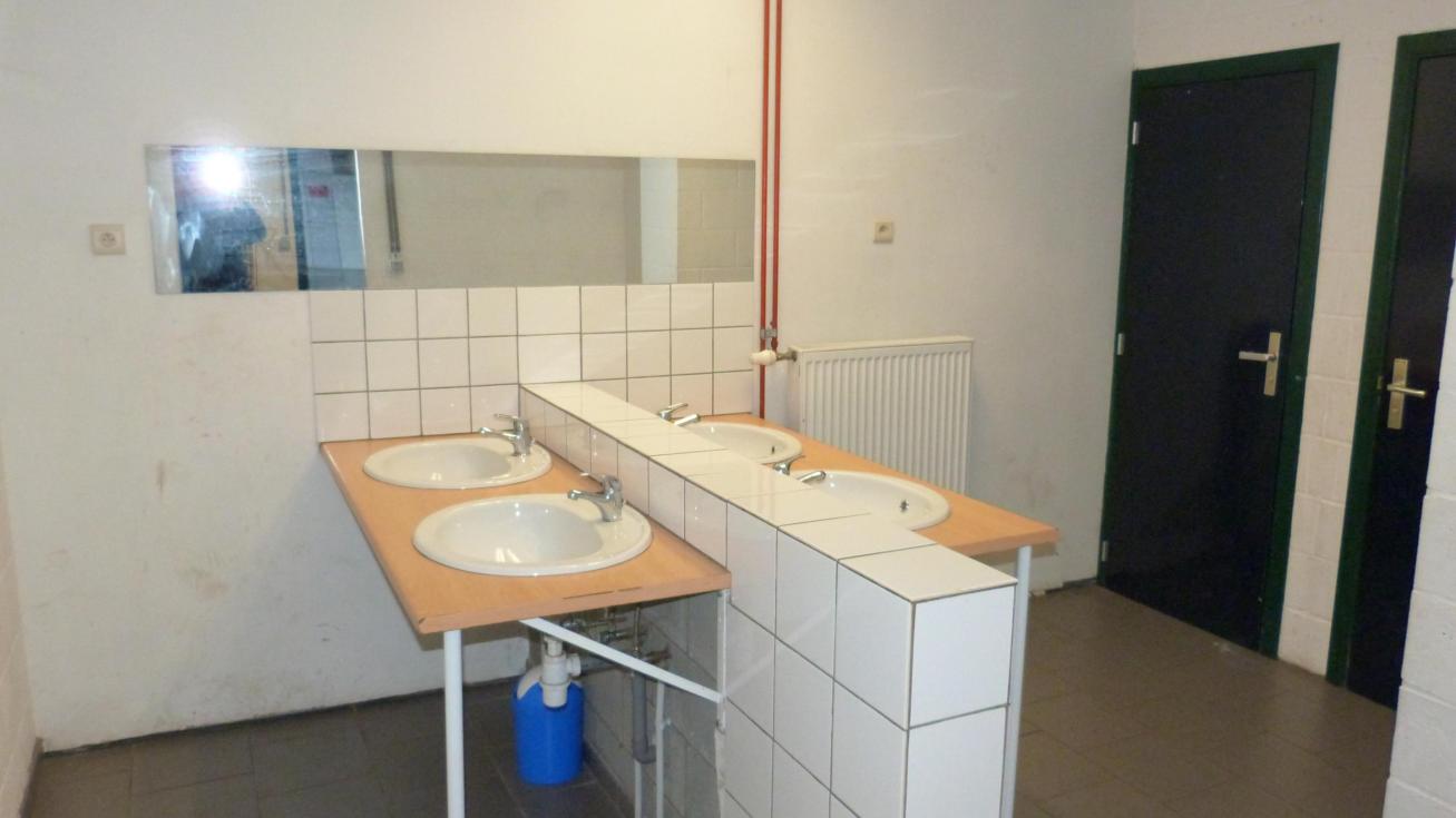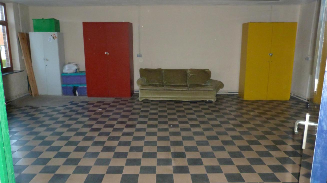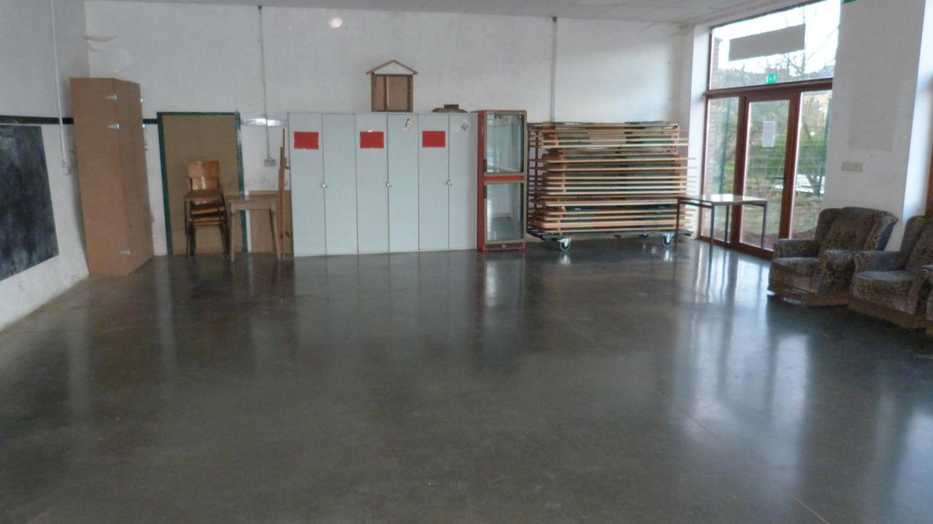 Une grande salle, cuisine, sanitaires en bas; 2 salles en haut (pas de lits).<br/>Espace libre et herbu autour des locaux permettant petits jeux.<br/> chauffage au gaz de ville.
