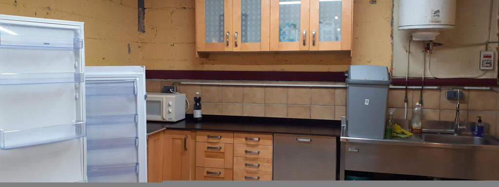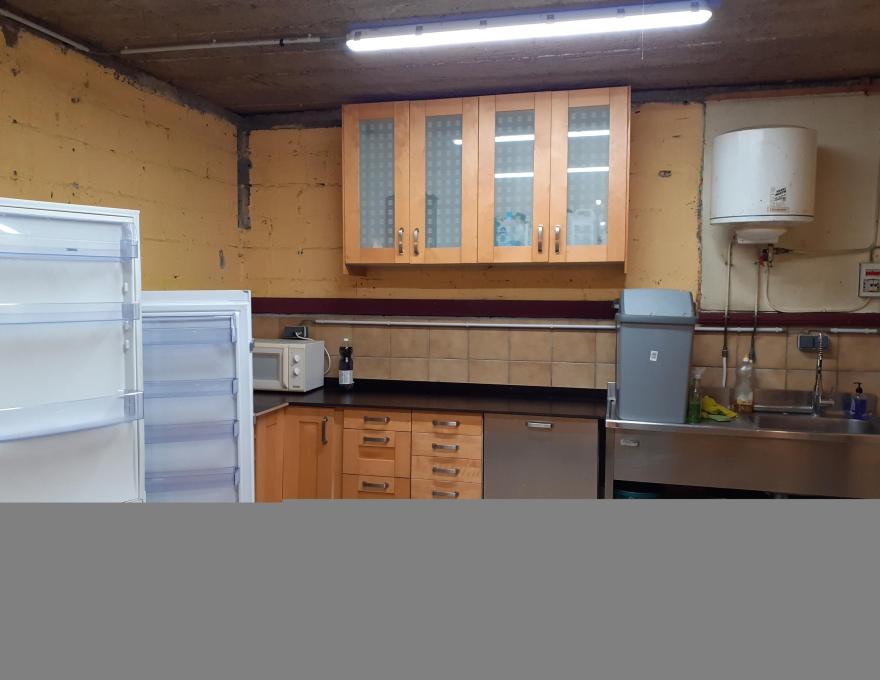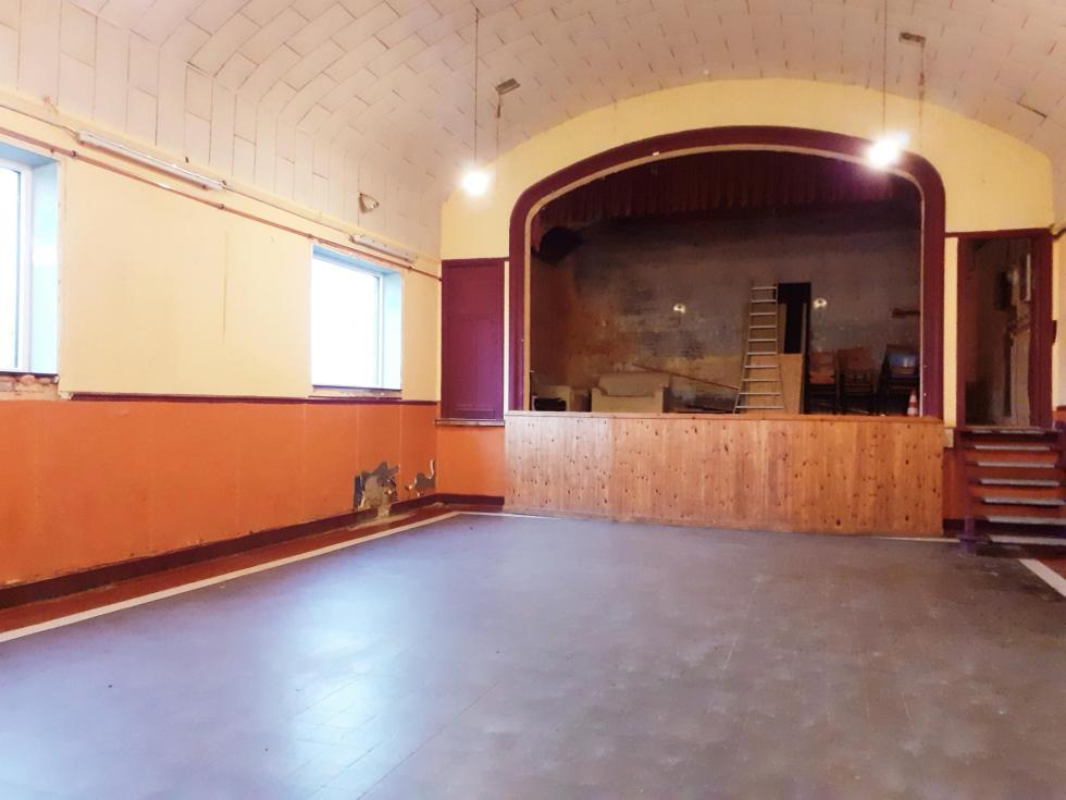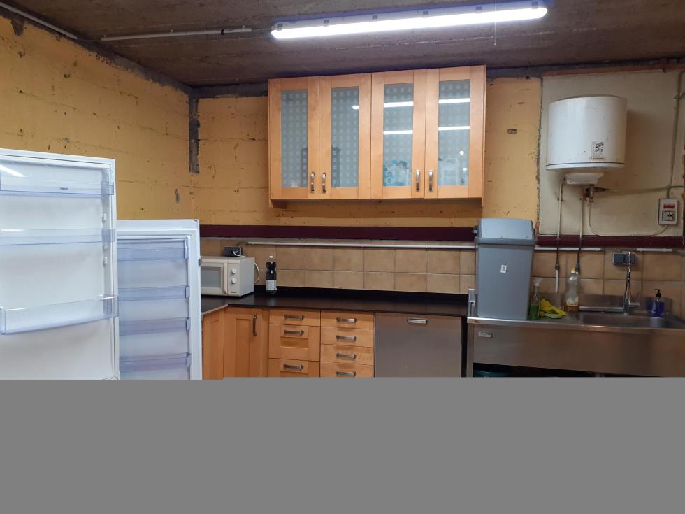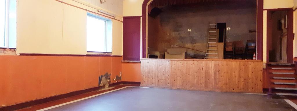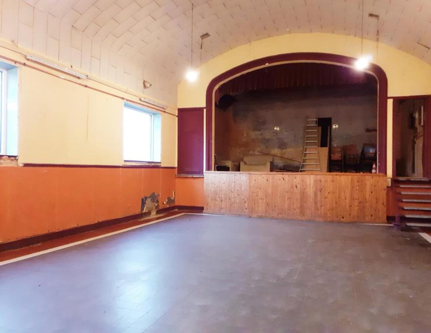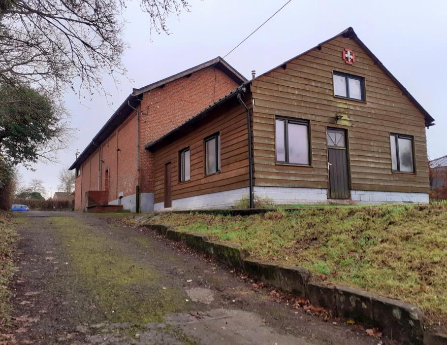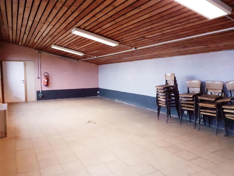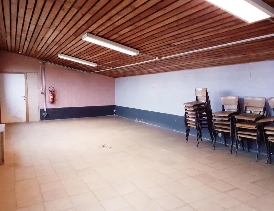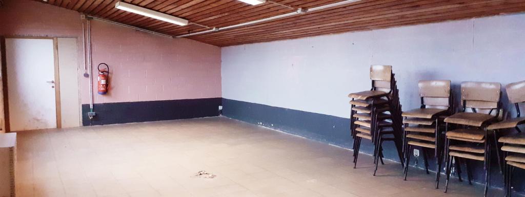 1 grande salle chauffée par aérotherme (réfectoire et/ou dortoir) avec 1 scène et 1 bar/cuisine, 1 dortoir et une pièce de rangement, de sanitaires, 1 grande cour extérieure, bois à proximité (voir avec le garde).