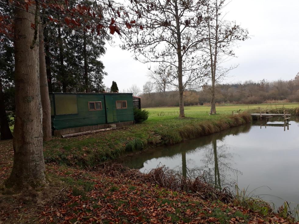Pâture de 2Ha avec etang à proximité du ravel et gare SNCB. Un abri avec un wc déjà sur place