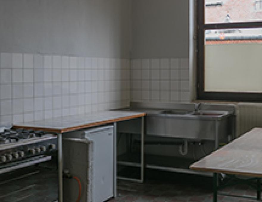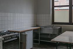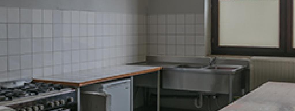 3 frigos, 1 congélateur 300L , cuisinière 5 becs et grand four, 1 évier double bacs,1 plan de travail.