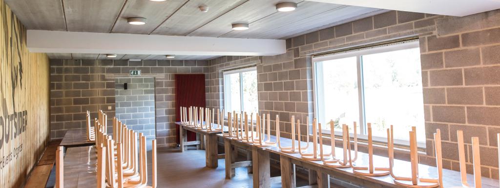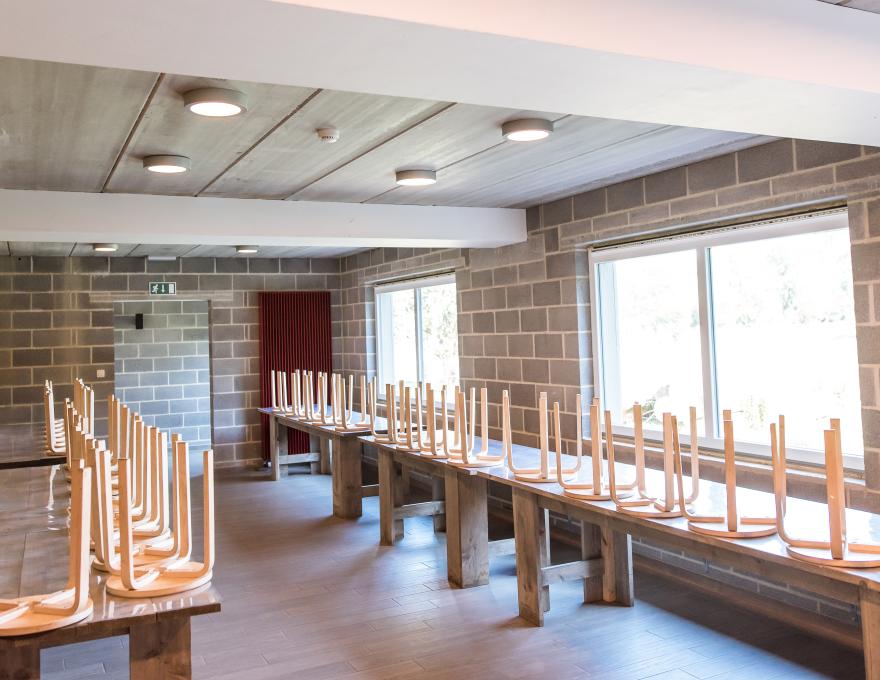 -grande salle à manger avec la vaiselle pour 70personnes