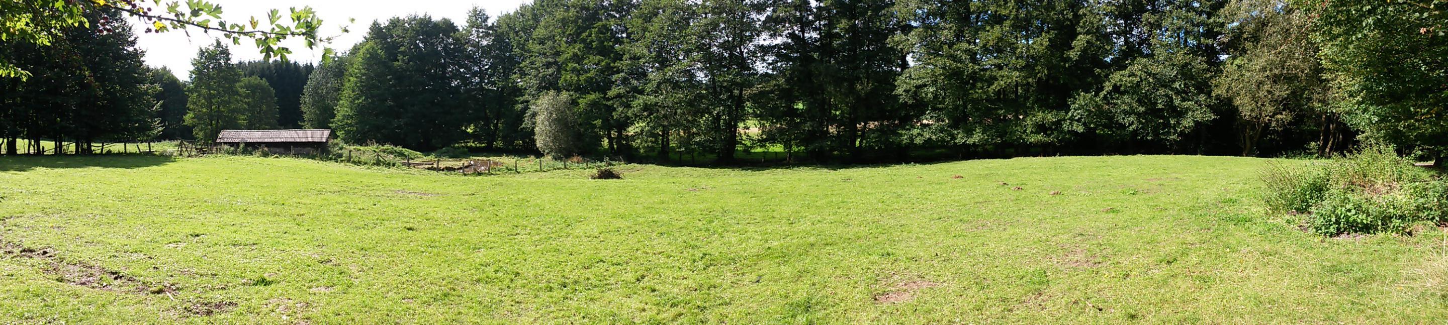 En venant du gîte à +/- 800 metres, c'est la prairie à GAUCHE avec les petits étangs.