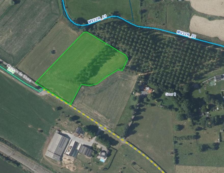 Prairie de 2,40 hectares située à Glons, à 20 km au Nord de Liège. Accès à l'eau et l'électricité juste à côté (à la ferme). Cours d'eau au fond du terrain mais pas propre.. Accès facile. Ravel à 10 mètres.