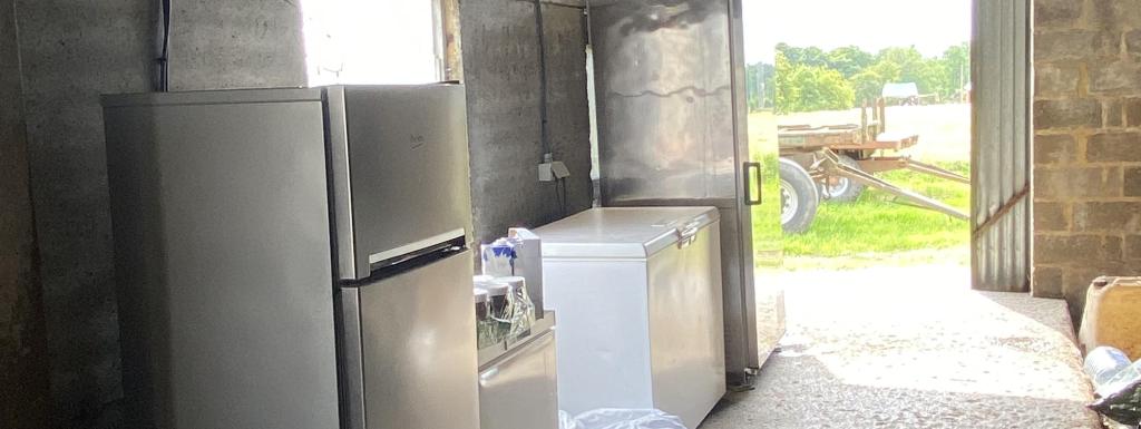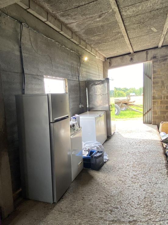 Hangar à proximité où nous mettons à disposition 1 frigo, 1 congélateur, des prises de courant.