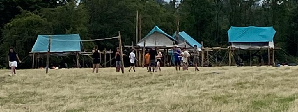 L'eau potable est fournie en bouteille disponible dans l'hangar et des cubis d'eau pour la cuisine et la douche sont acheminés sur le champ.