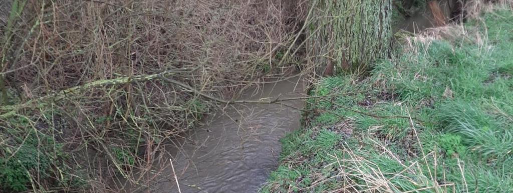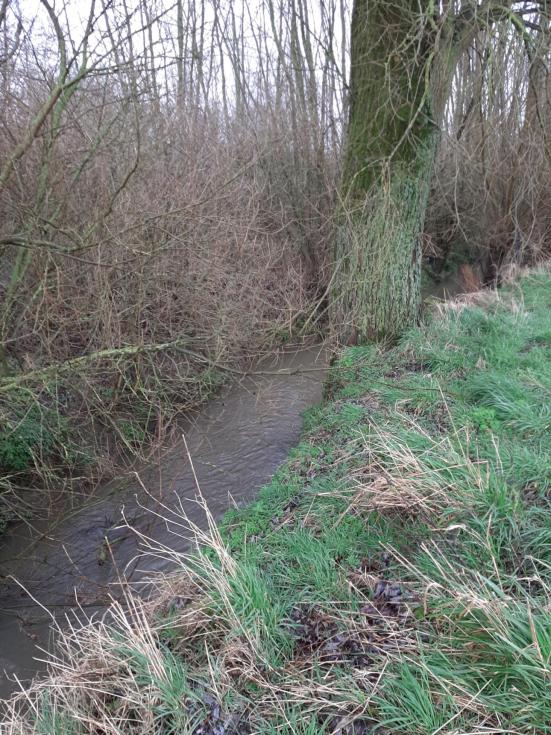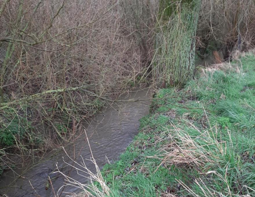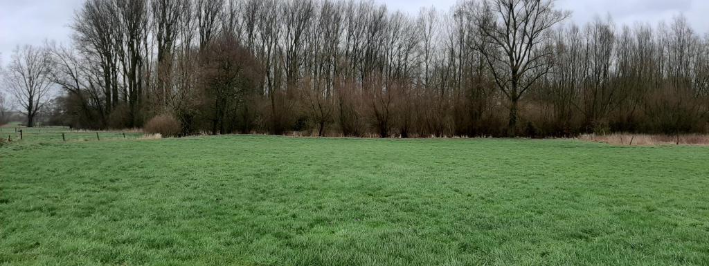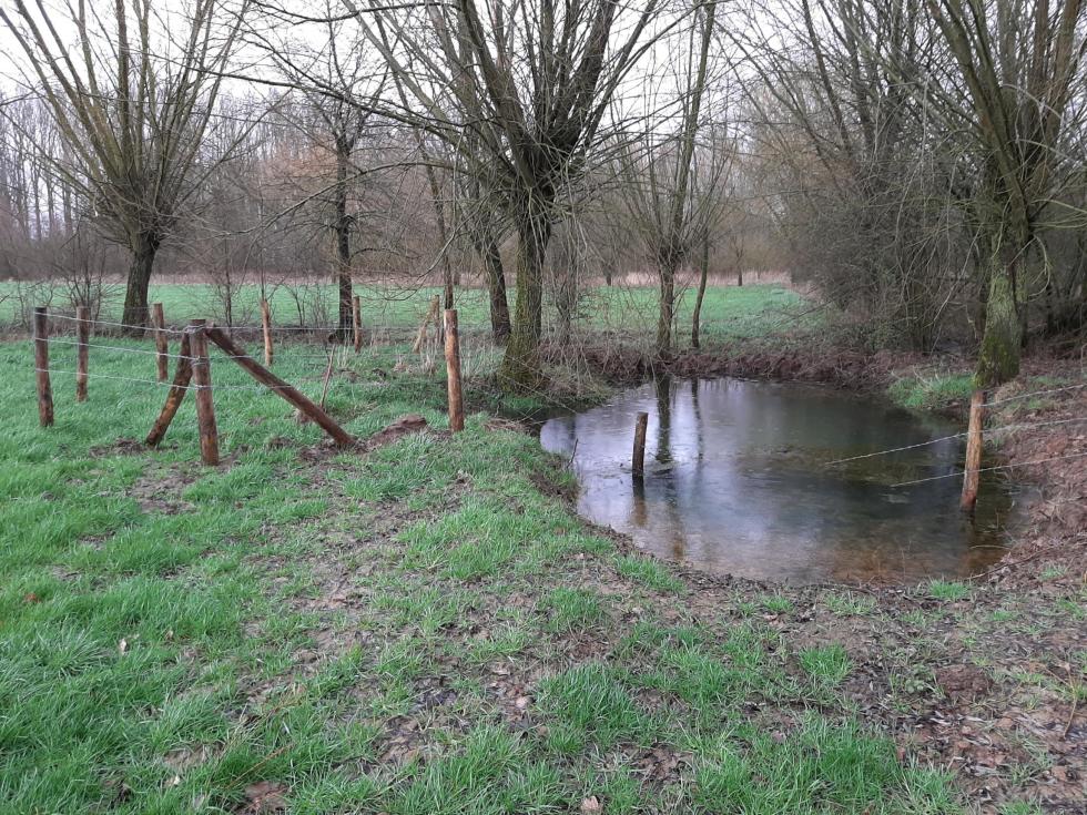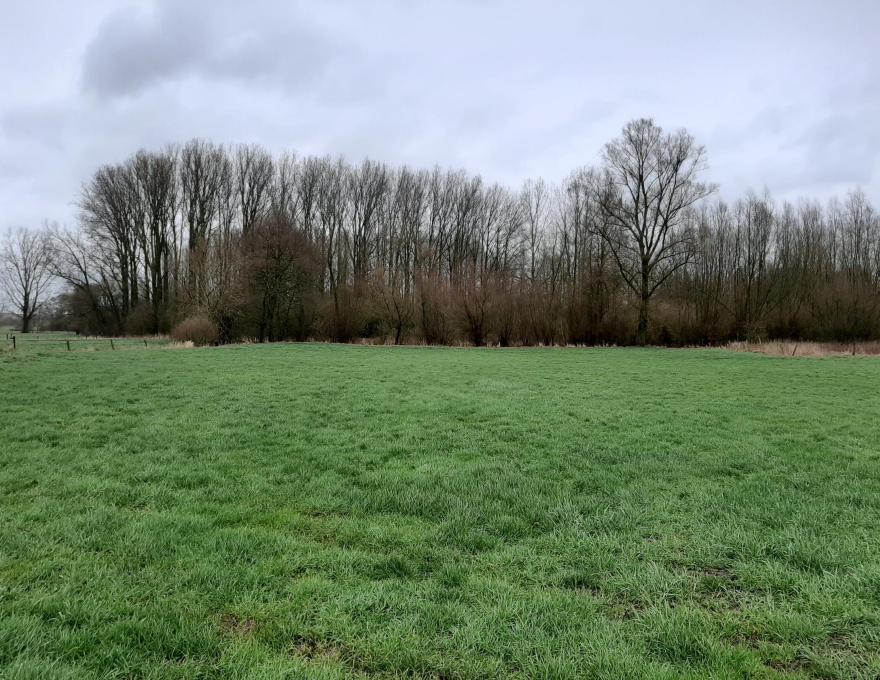 Prairie bordée d'un cours d'eau et de bois, au bout d'un cul de sac.
