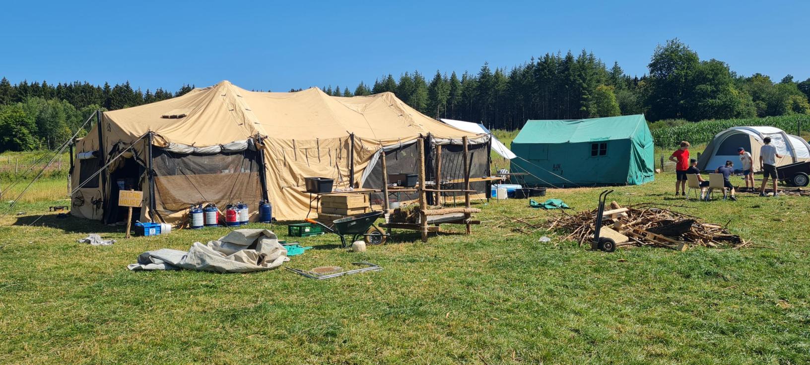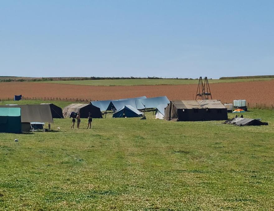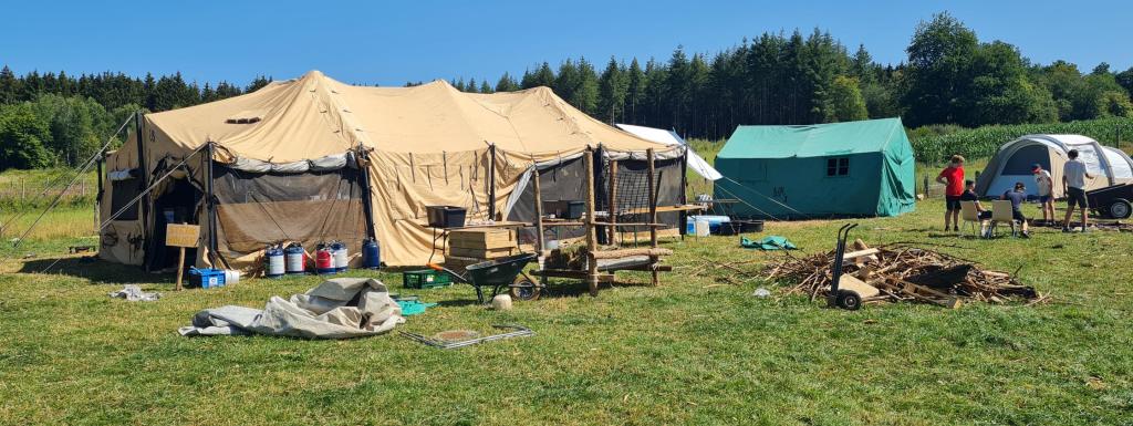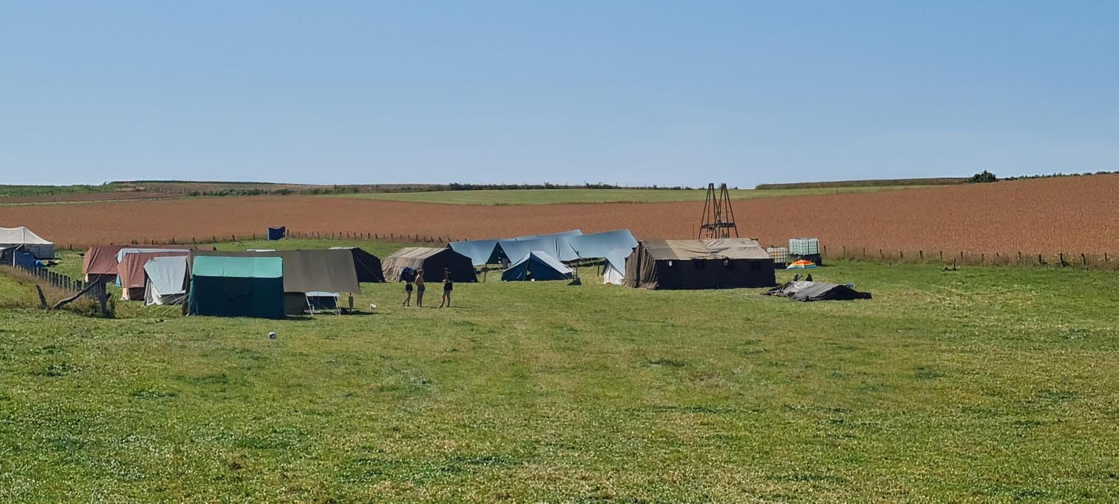 Agréable prairie de 2 hectares, pour une capacité de 101 résident. A l'écart du village et entourée de champs et forêts. A 800 mètres une forêt est accessible pour diverses jeux. Le ravitaillement en eau potable et électricité se fait a 1km de la prairie. Un ancien étable est mis à votre disposition avec courant et frigo si besoin. Des réserves d'eau non potable (hygiène corporelle) vous sera fournies durant le séjour
