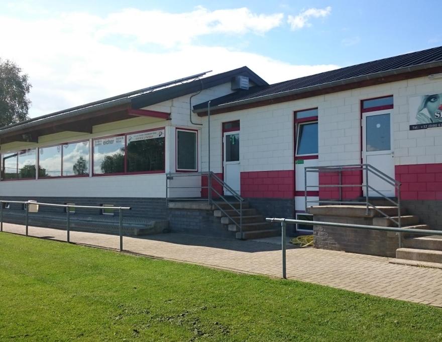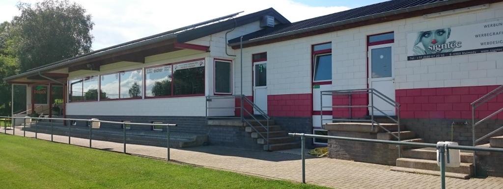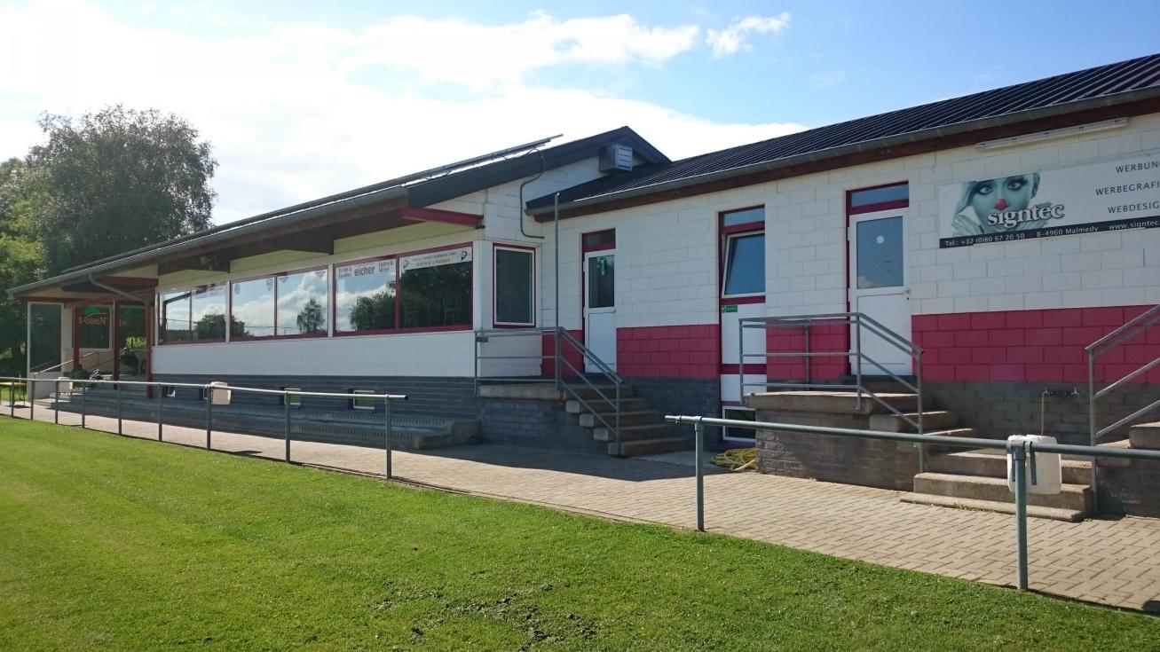 Installations du club de football de la RUS 1947 EMMELS ; complexe situé à la campagne à proximité des bois ; possibilité de pratiquer différentes activités sportives ; ville de Saint Vith à seulement 3 km (bouchers, boulangers, différents supermarchés, piscine couverte et extérieure, plaine de jeux, …)