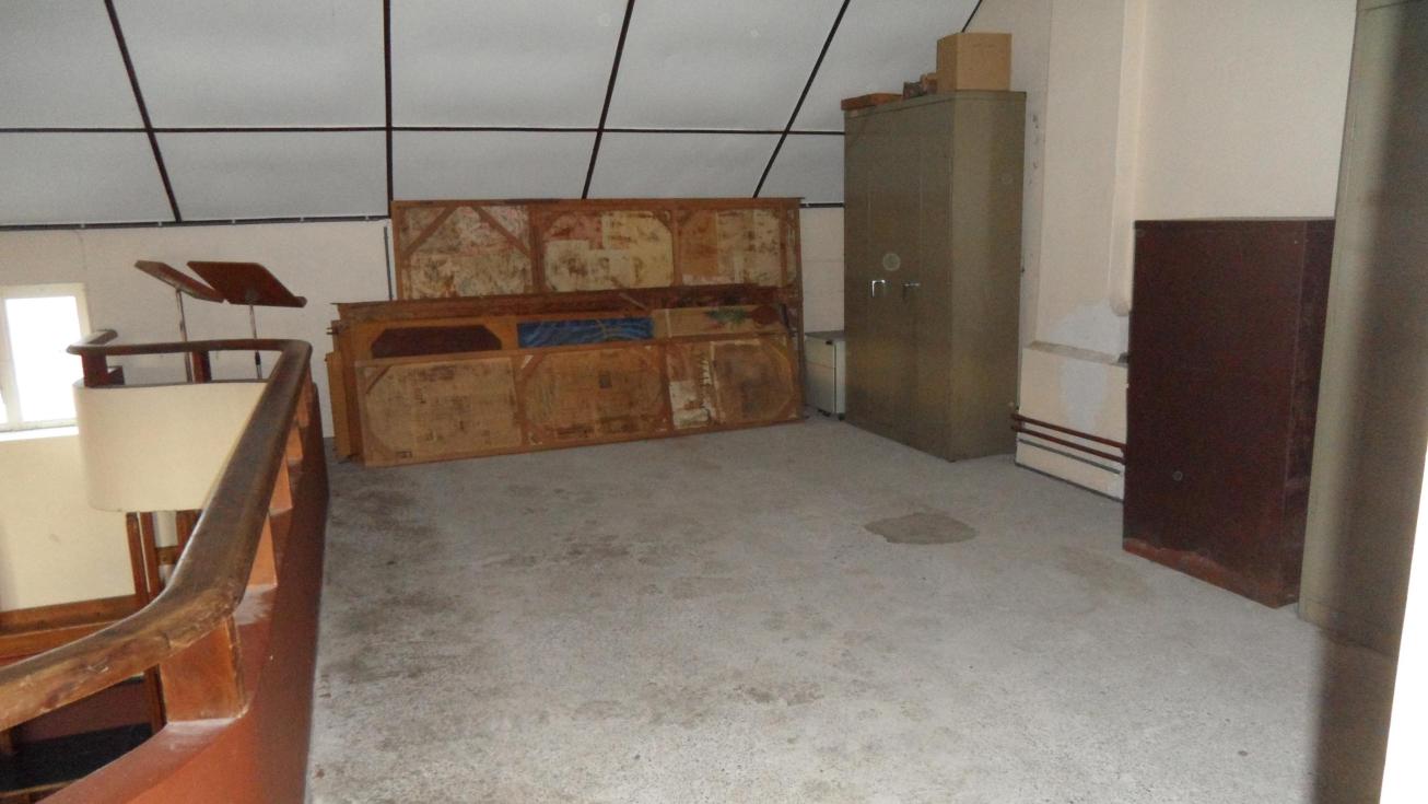 Pour les chefs, possibilité de dormir sur le balcon/mezzanine (avant-dernière photo) ou en été, dans une tente SNJ, sur une (petite) pelouse à l'arrière de la salle (dernière photo).