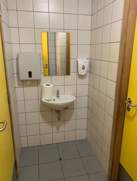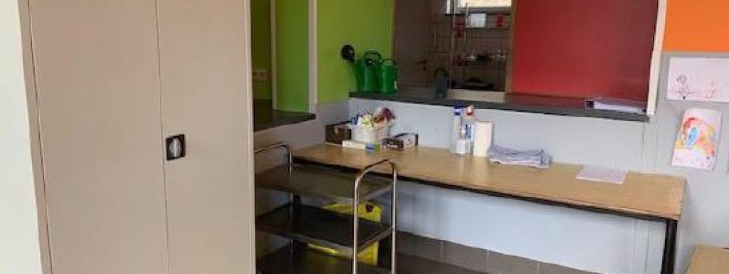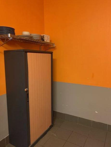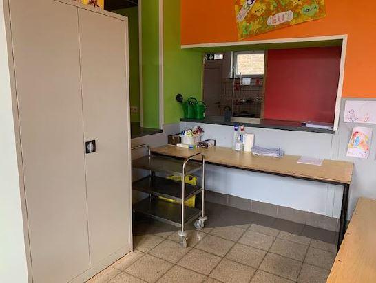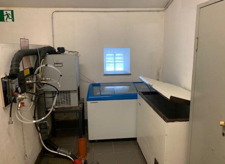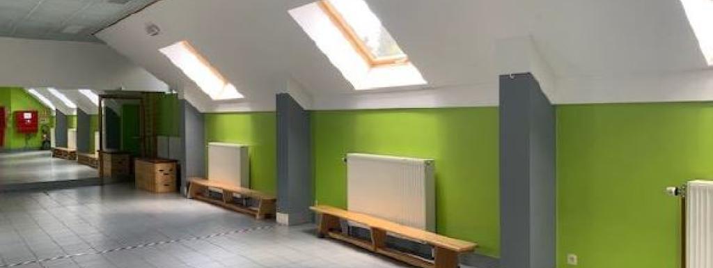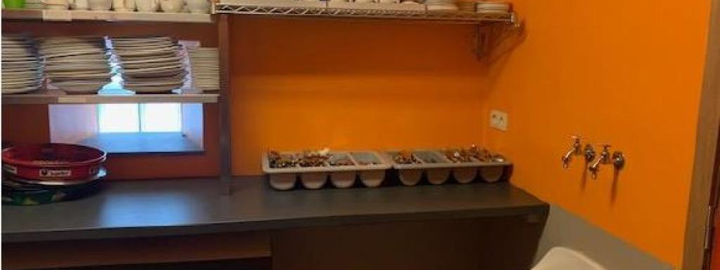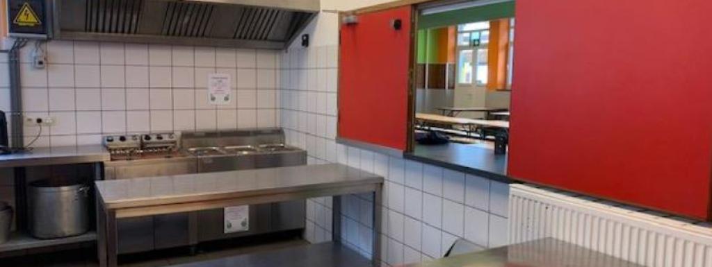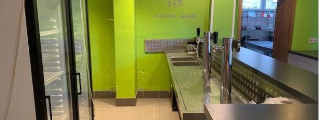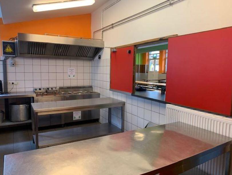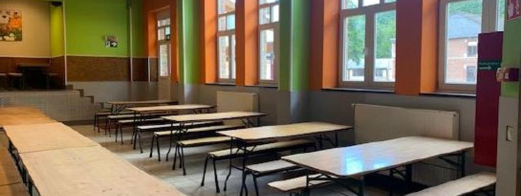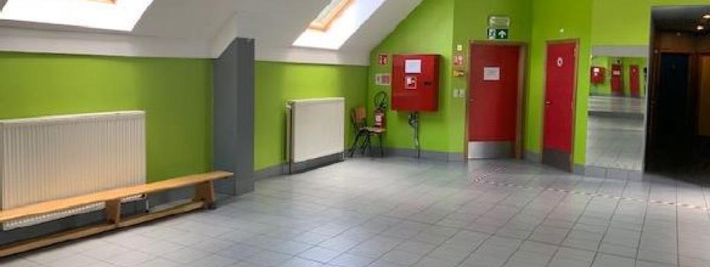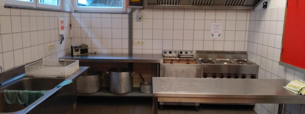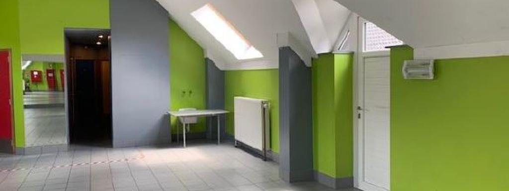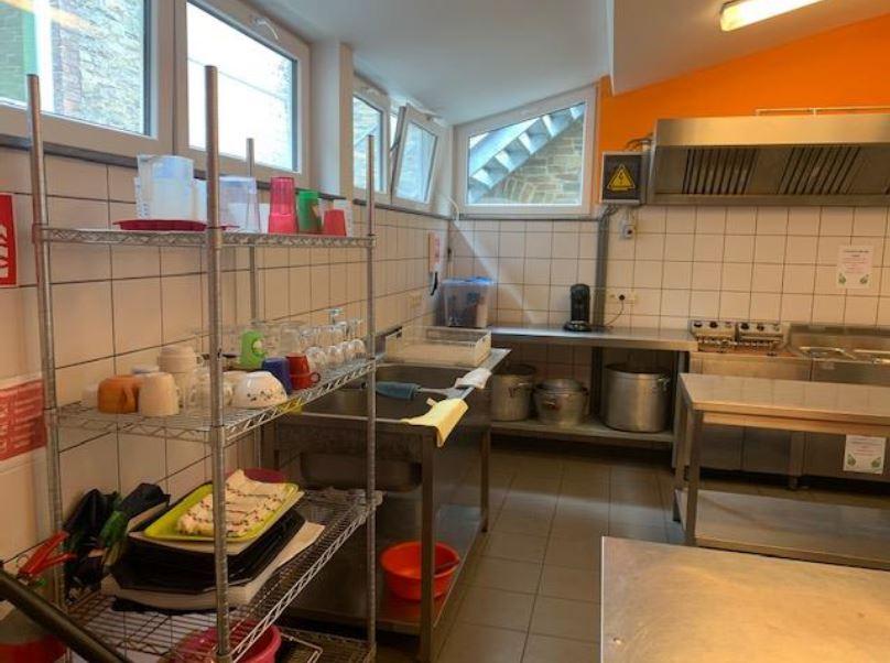 Rez: réfectoire - scène - comptoir - cuisine équipée - arrière cuisine avec chambre froide - réserve - toilettes (5 wc+urinoirs)