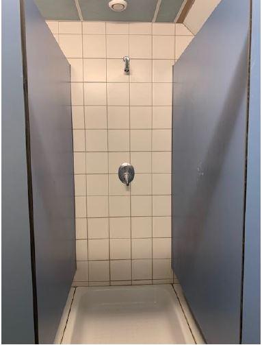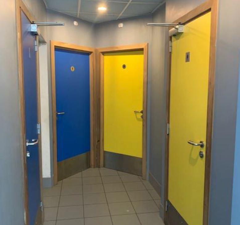 Etage: dortoir - pièce de rangement - toilettes (3+urinoir) - douches (6)