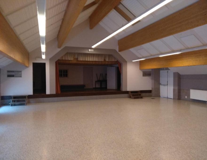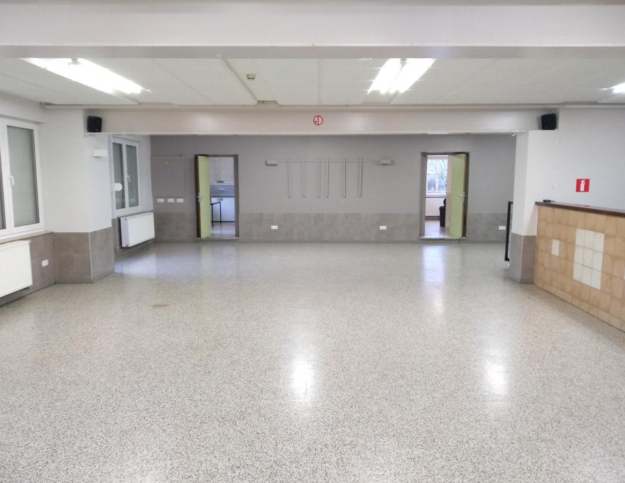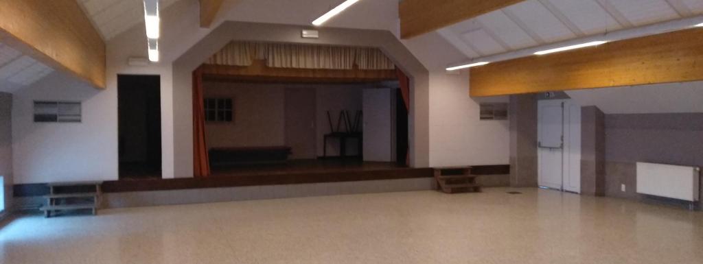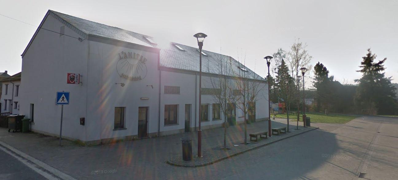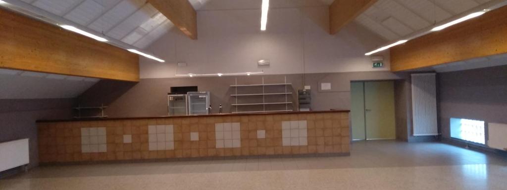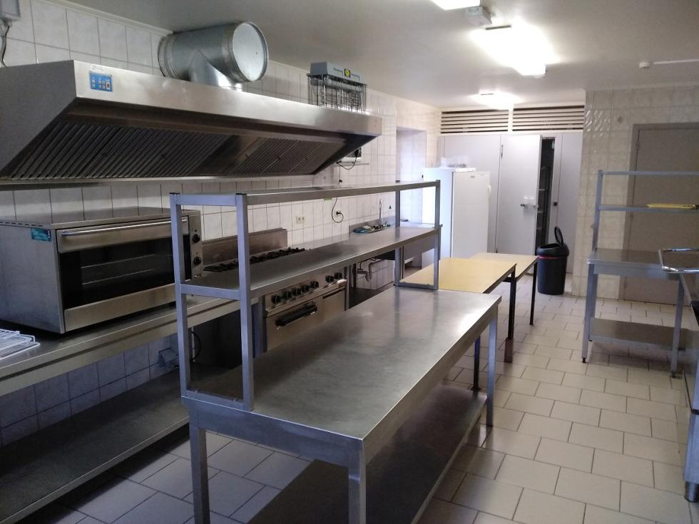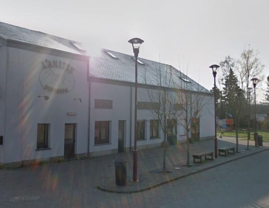 2 Salles (rez-de-chaussée + étage) avec chauffage, comprenant tables et chaises en suffisance. Sanitaires : 6 W-C, 3 urinoirs, 4 lavabos et 6 douches avec eau chaude. Cuisine équipée : 1 fourneau à gaz (6 becs + four), 1 chambre froide, 1 congélateur, 3 petit frigo, 3 éviers et plusieurs plans de travail. (rem : le lave-vaisselle n´est pas mis à disposition du locataire), 1 terrain (avec pleine de jeu) de +/- 500 m² et 1 parking de +/- 750 m², jouxtant la salle pour faire des jeux et autres activités. ! Pas de feu de camps possible près de la salle.