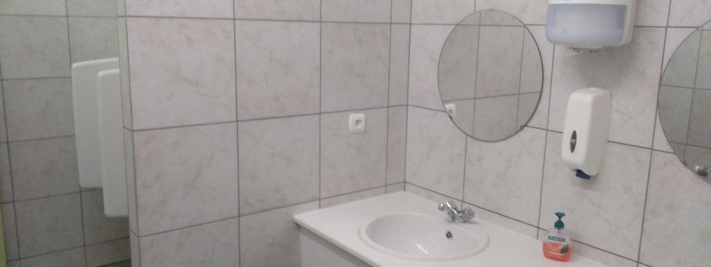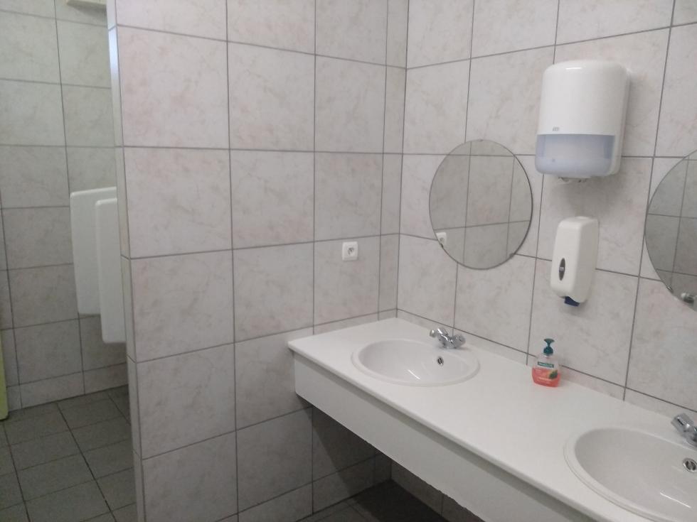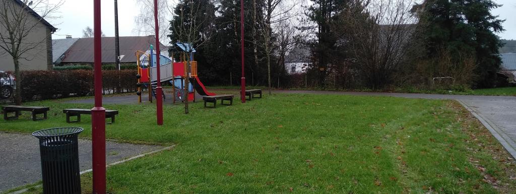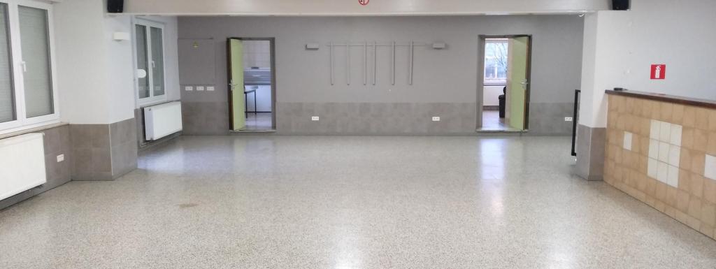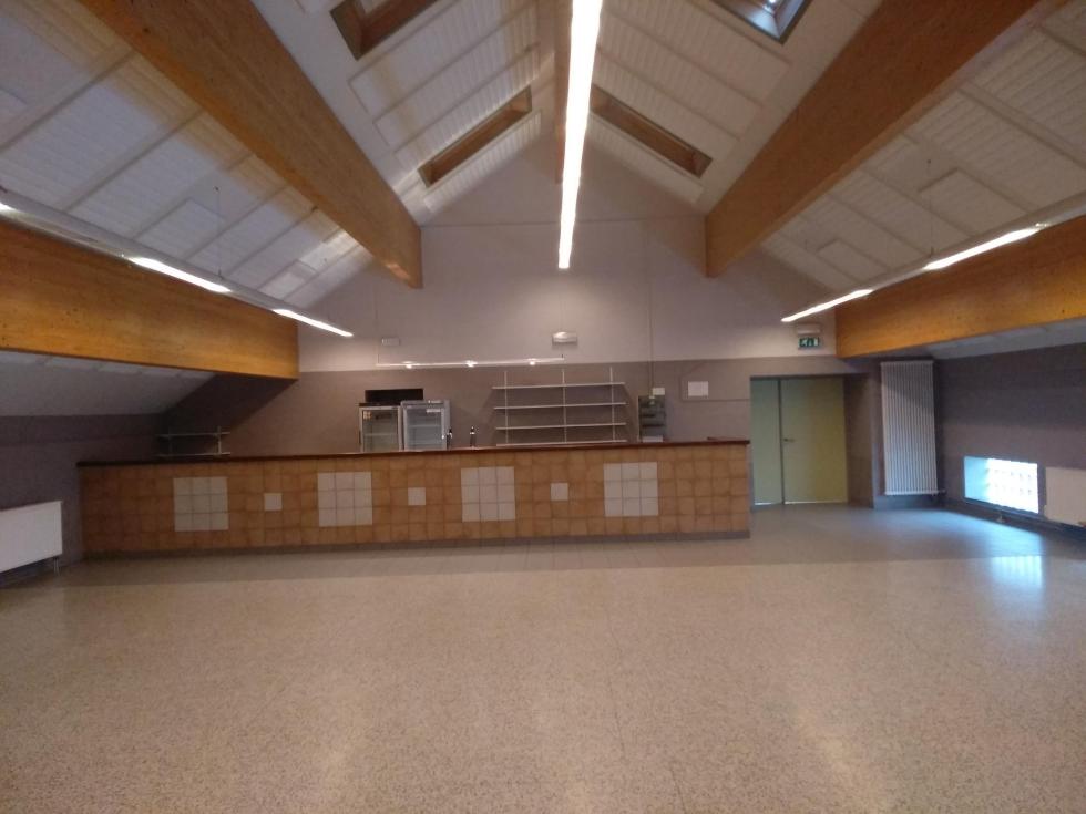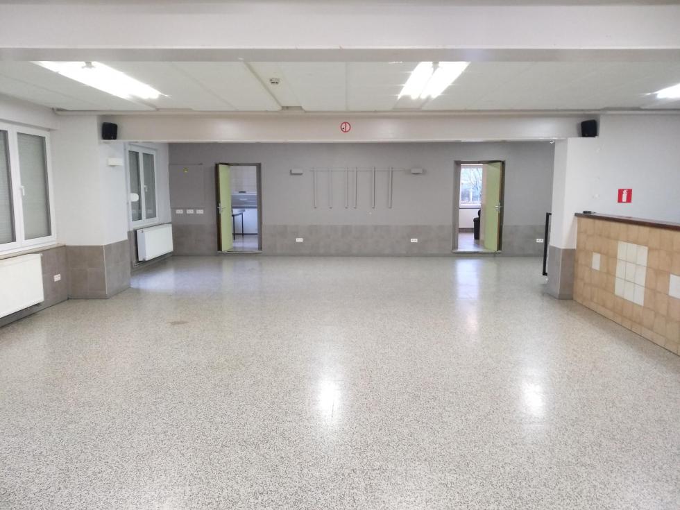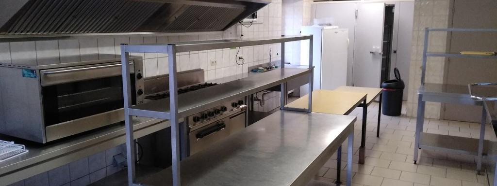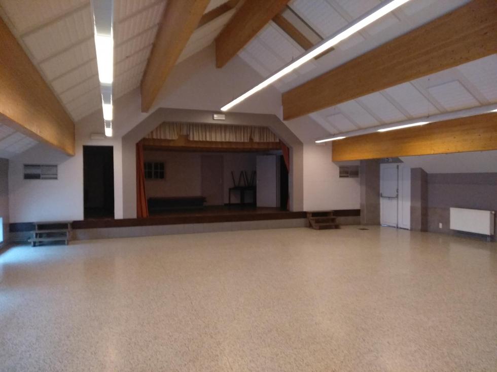 2 Salles (rez-de-chaussée + étage) avec chauffage, comprenant tables et chaises en suffisance. Sanitaires : 6 W-C, 3 urinoirs, 4 lavabos et 6 douches avec eau chaude. Cuisine équipée : 1 fourneau à gaz (6 becs + four), 1 chambre froide, 1 congélateur, 3 petit frigo, 3 éviers et plusieurs plans de travail. (rem : le lave-vaisselle n´est pas mis à disposition du locataire), 1 terrain (avec pleine de jeu) de +/- 500 m² et 1 parking de +/- 750 m², jouxtant la salle pour faire des jeux et autres activités. ! Pas de feu de camps possible près de la salle.